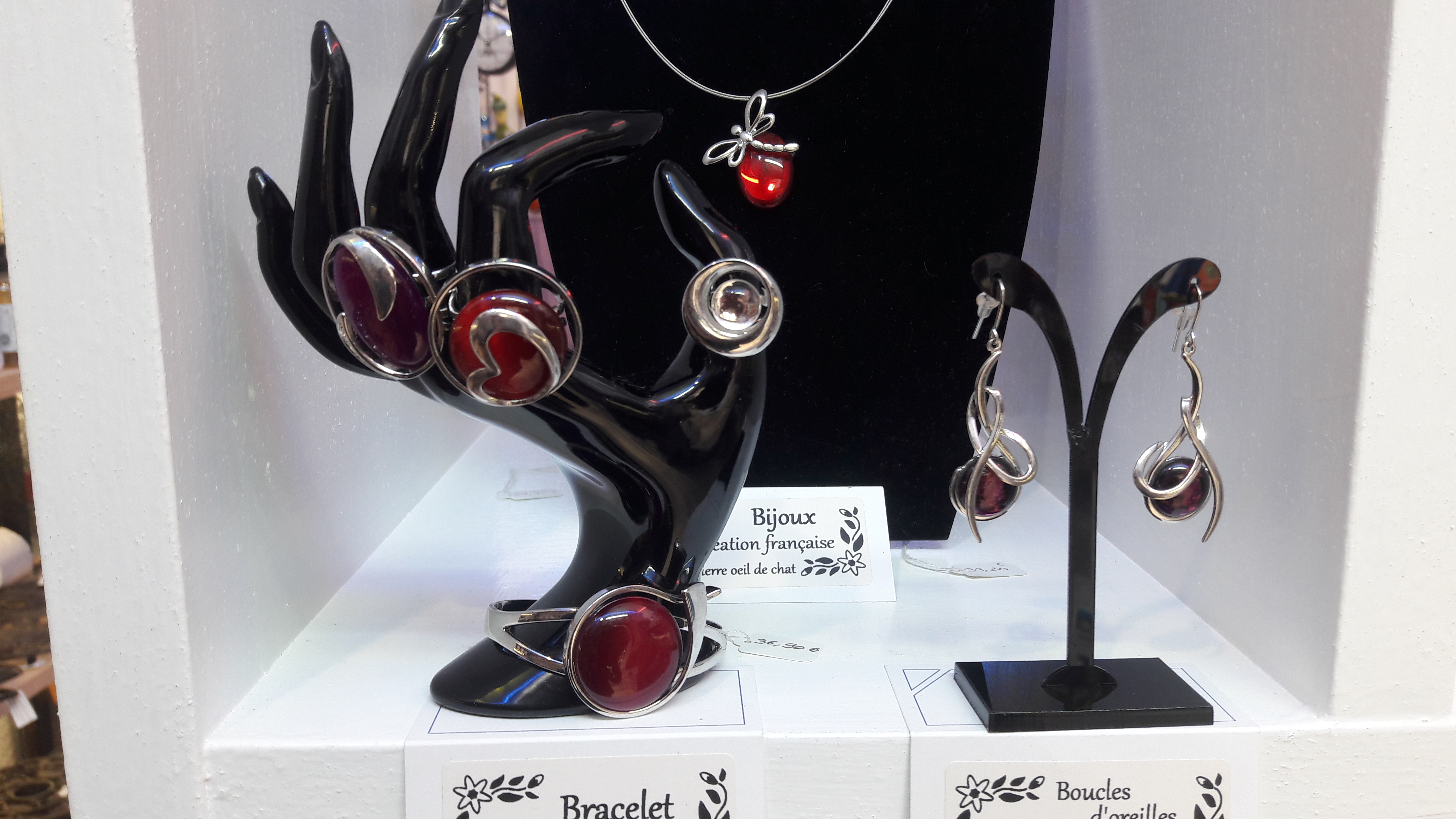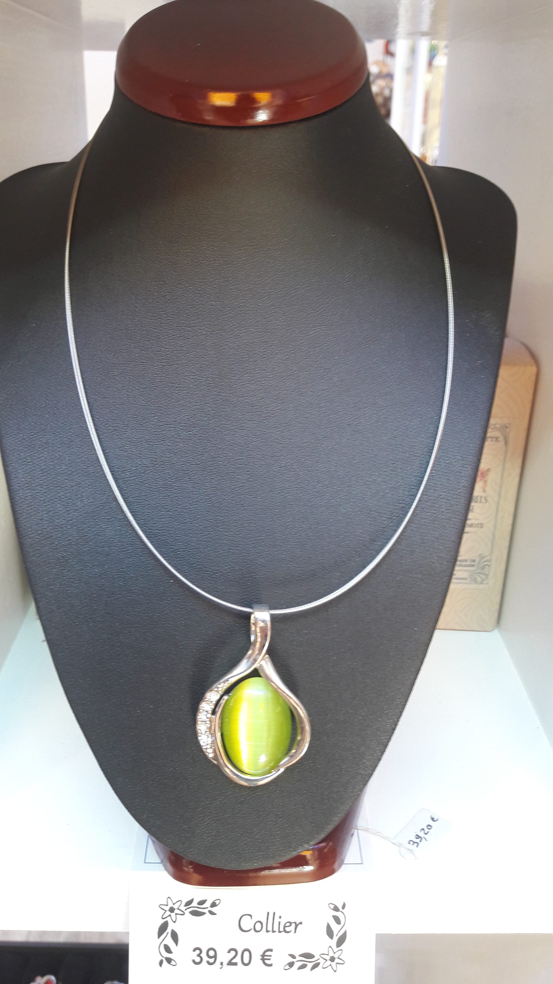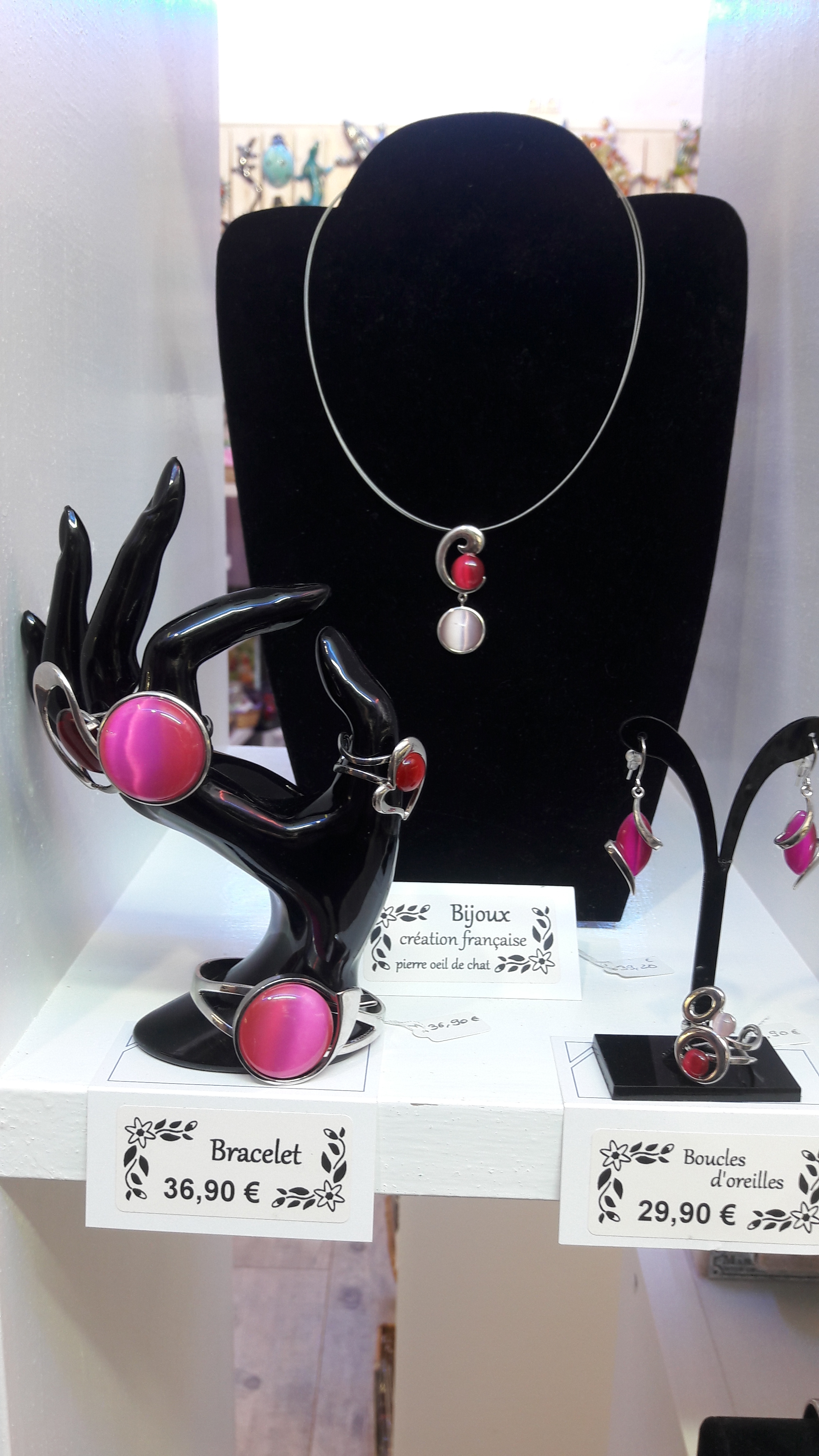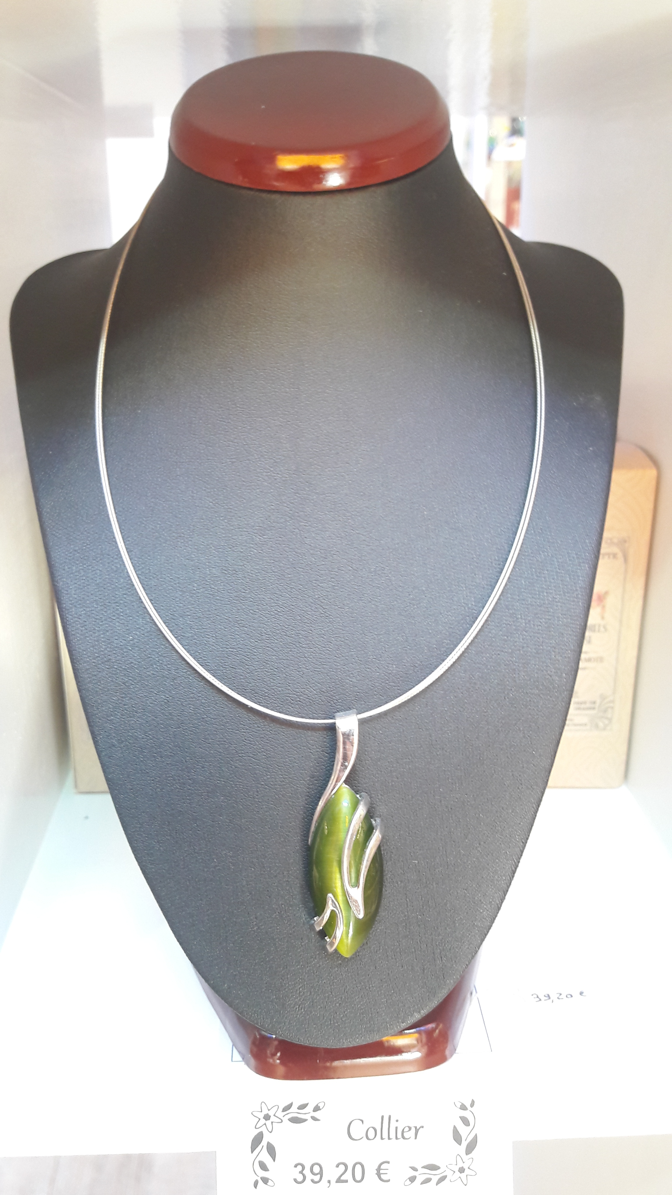 Bijoux fantaisie de très belle fabrication avec une pierre œil de chat ou verre coloré aux reflets élégants.