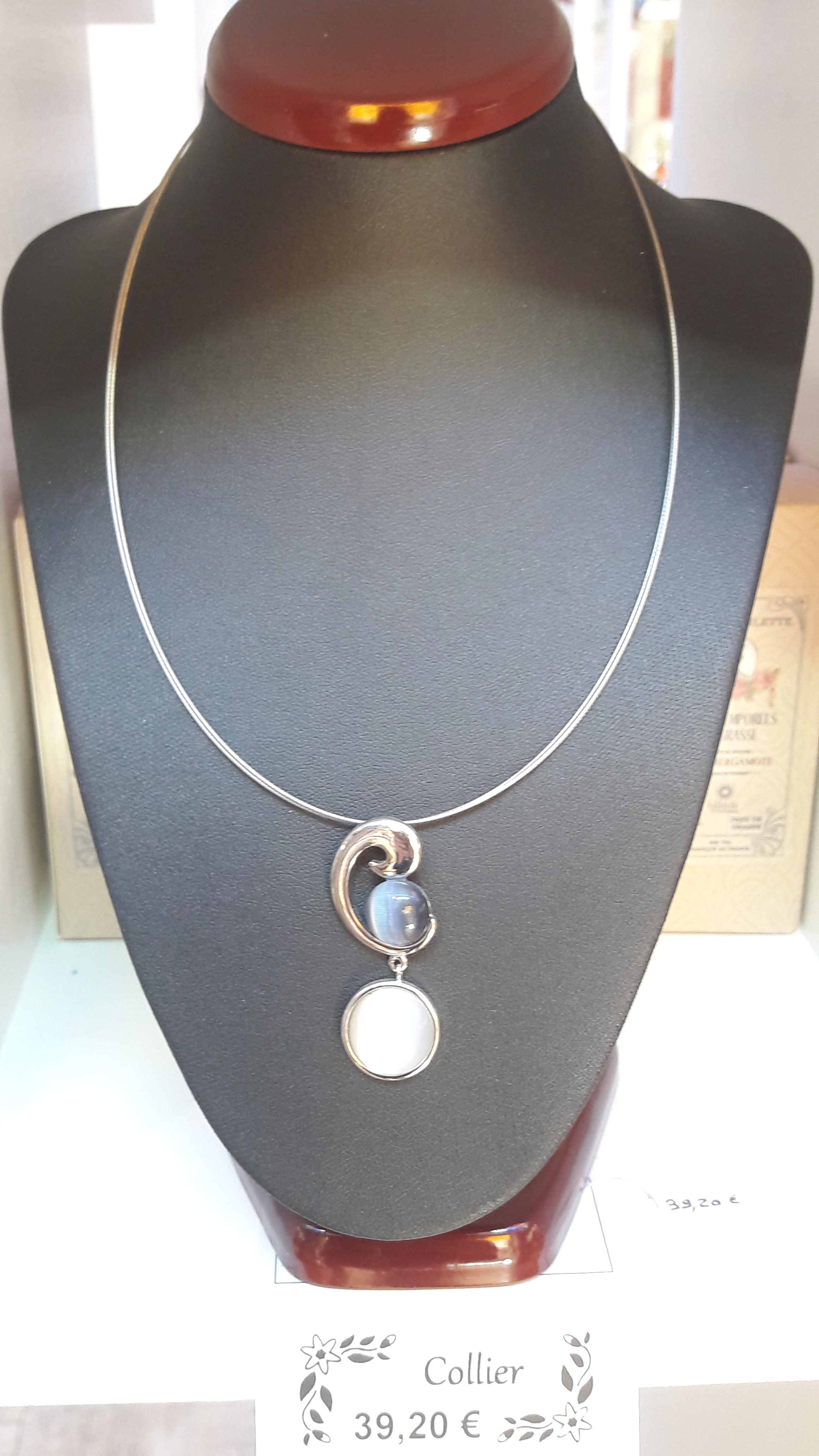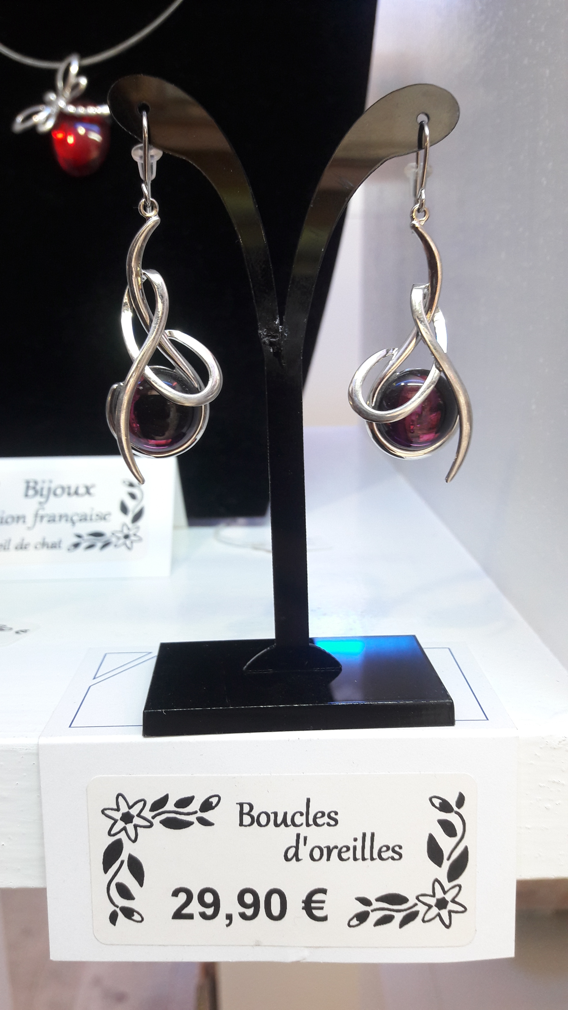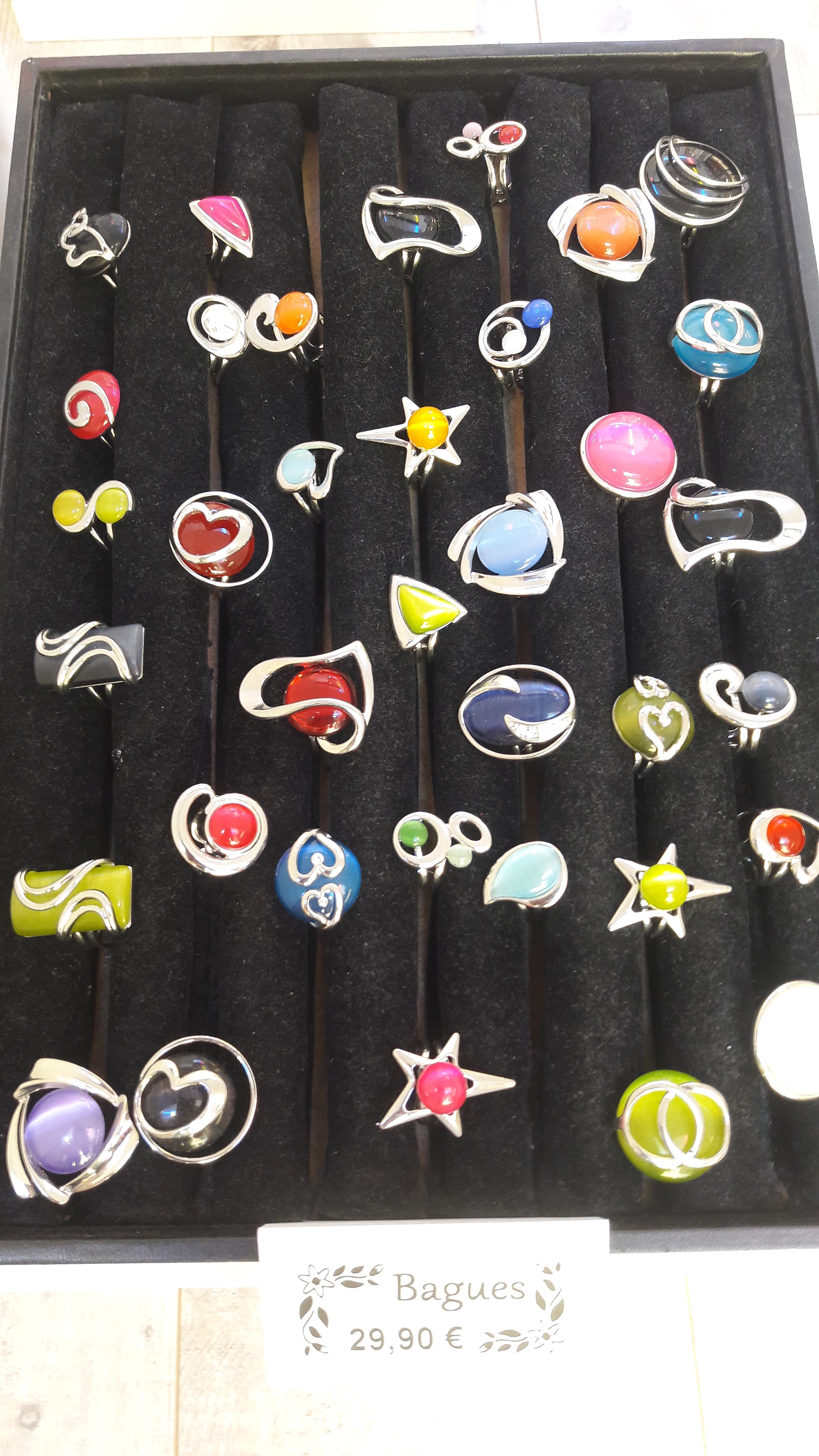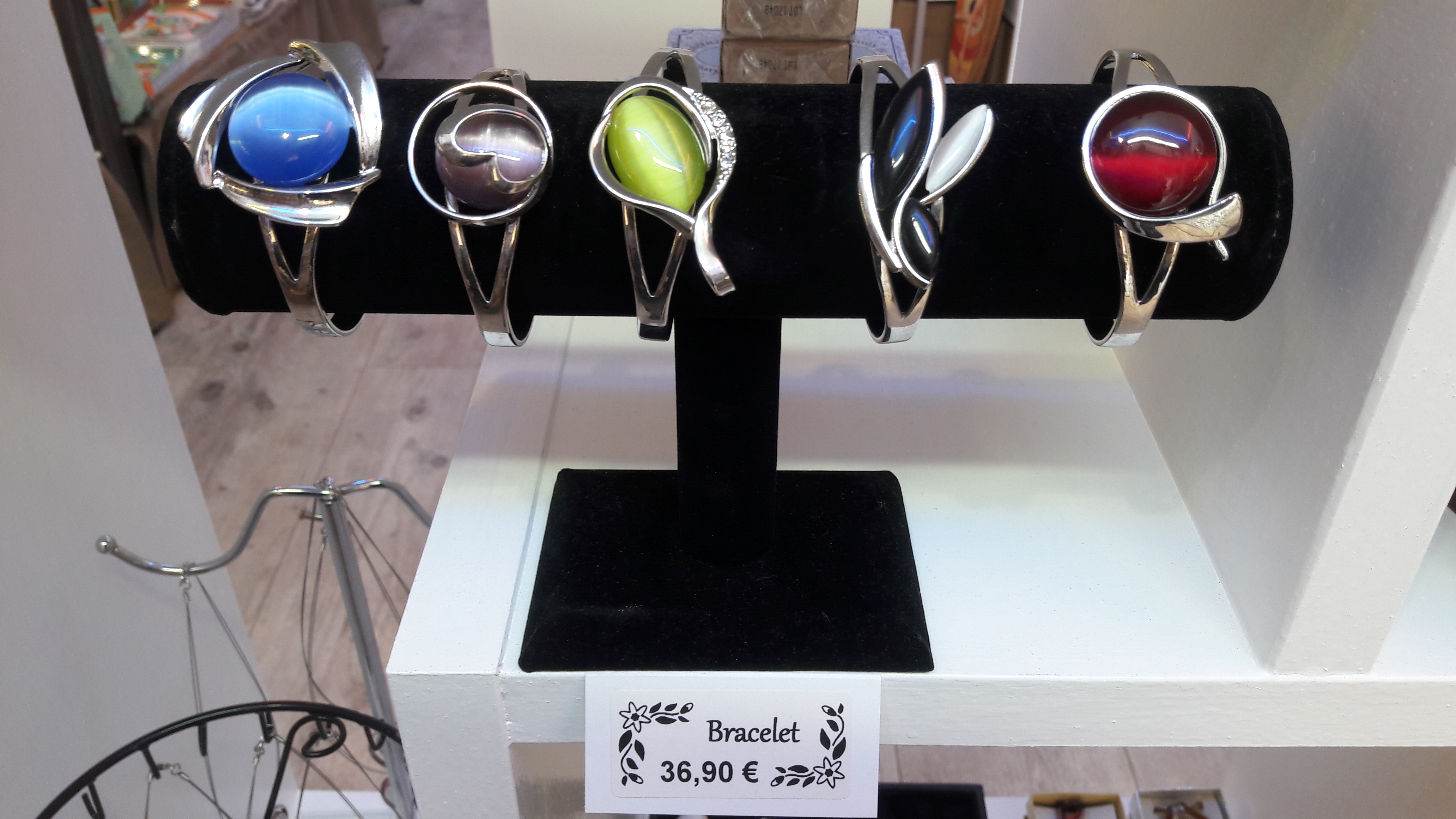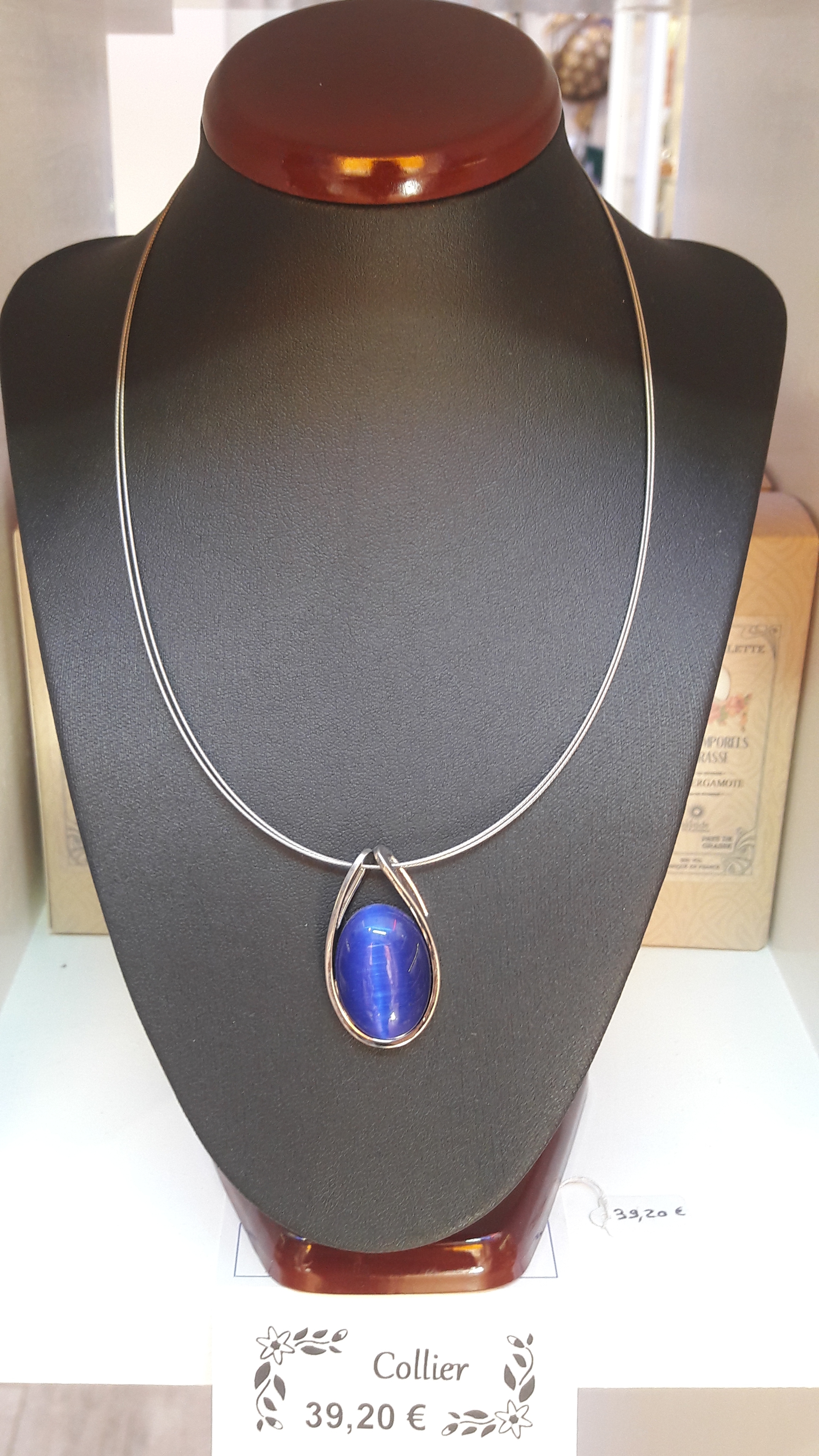 Bijoux fantaisie de très belle fabrication avec une pierre œil de chat ou verre coloré aux reflets élégants.