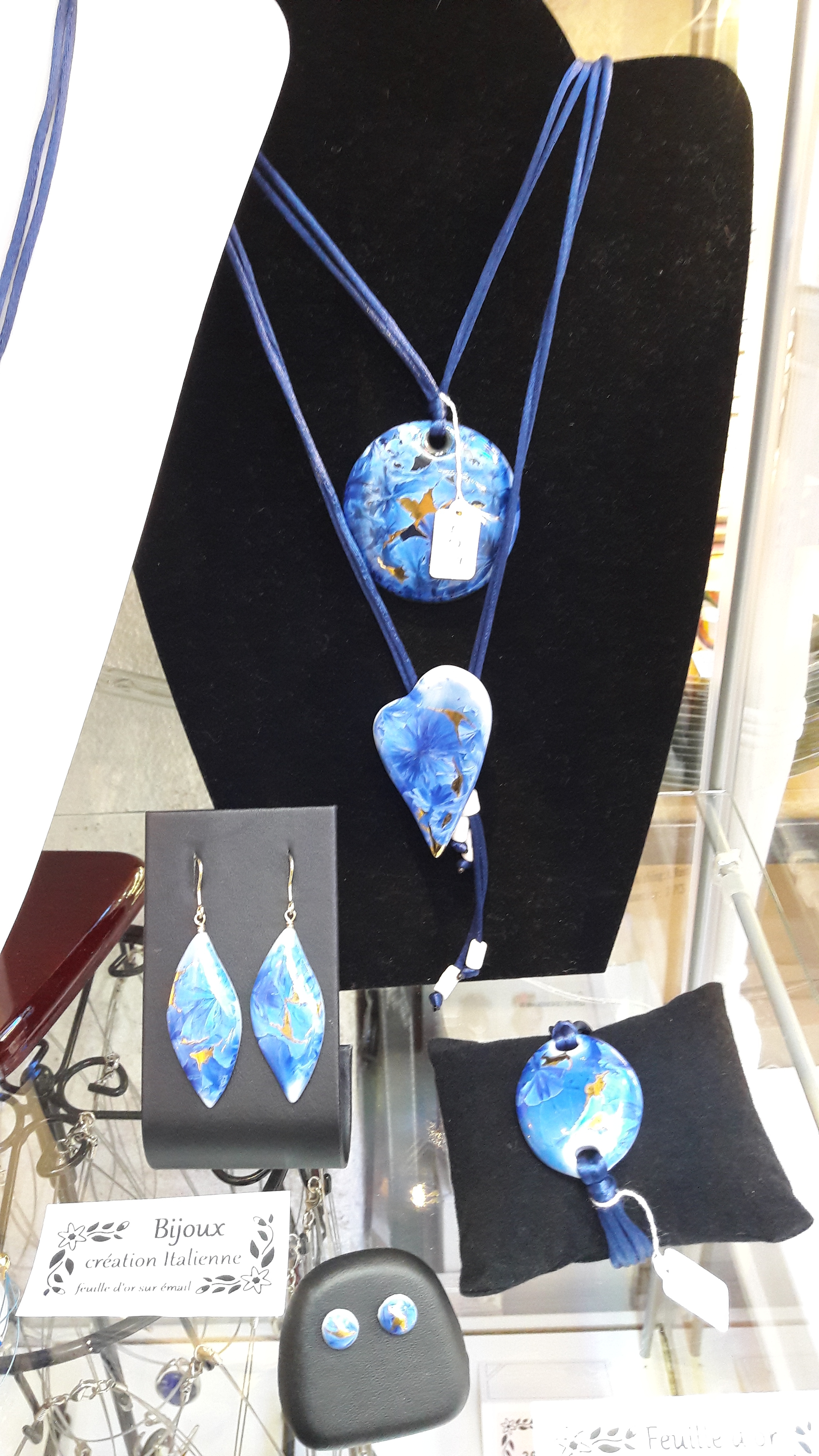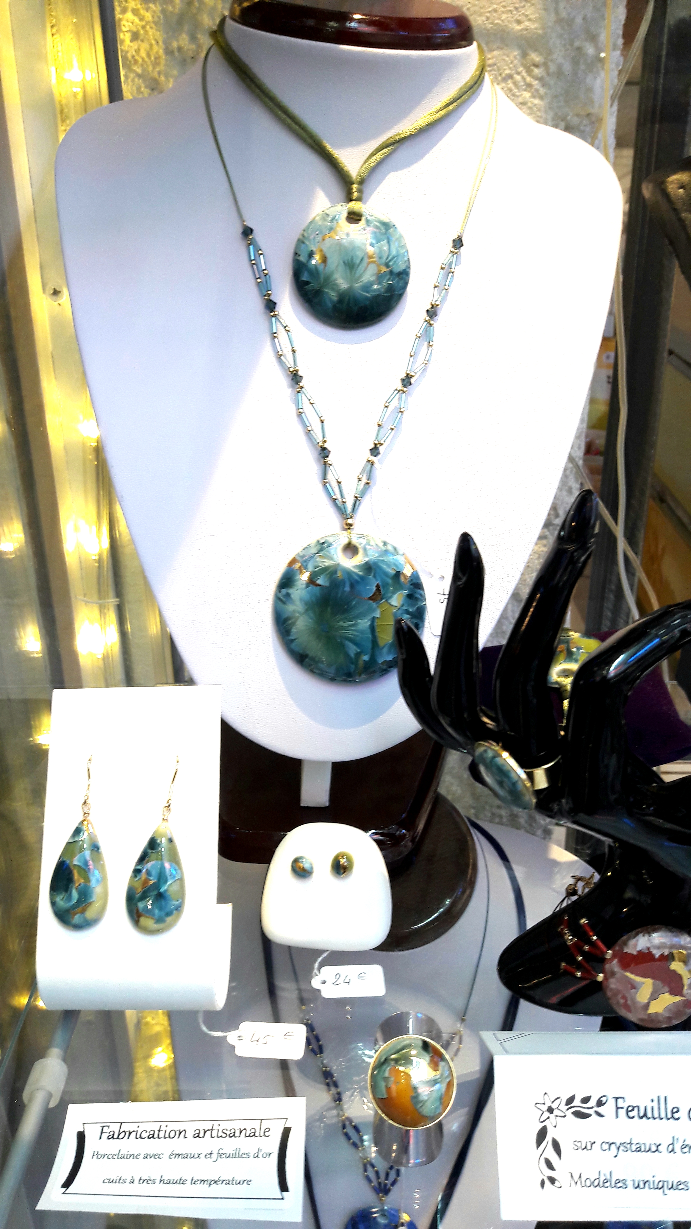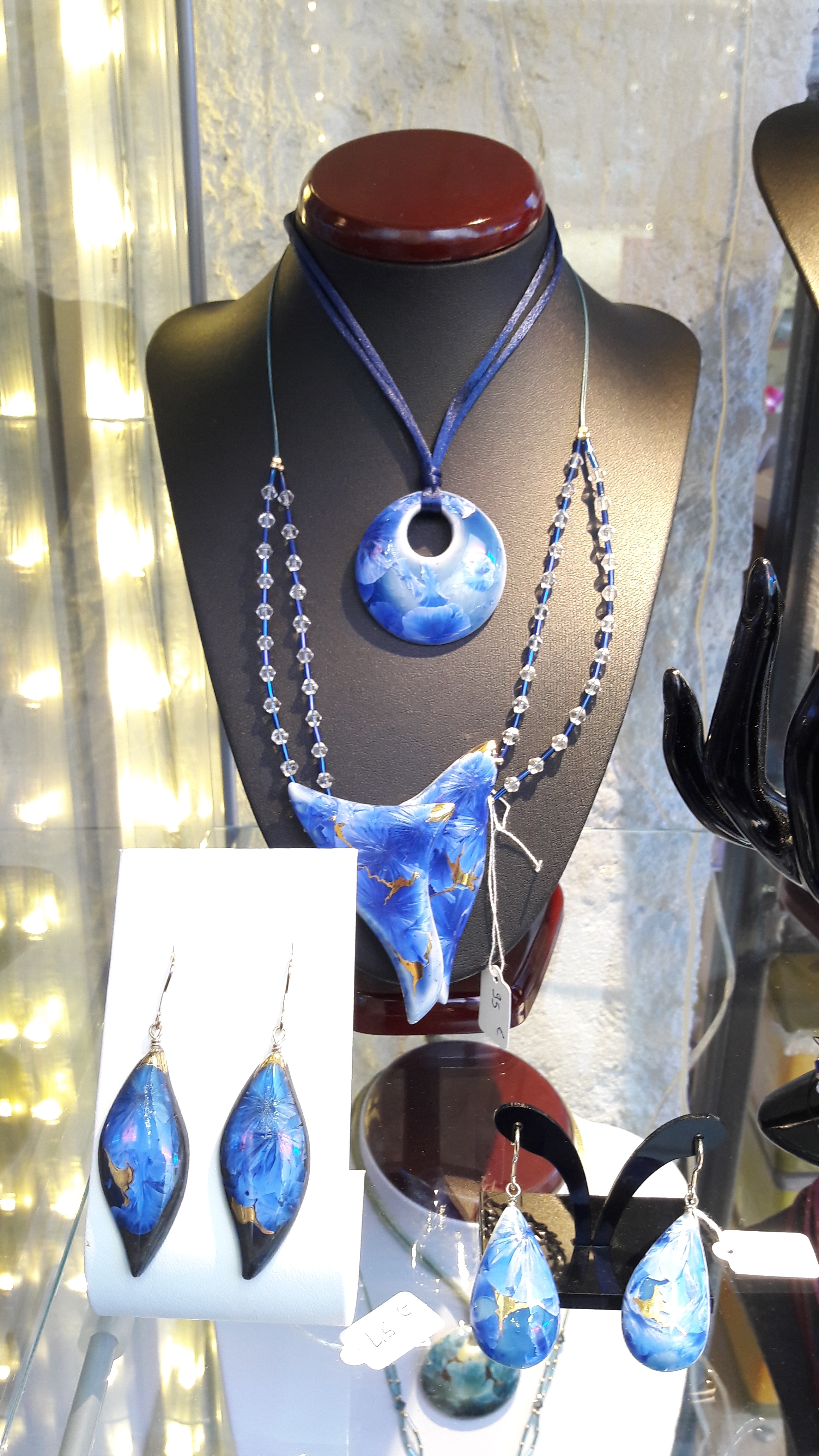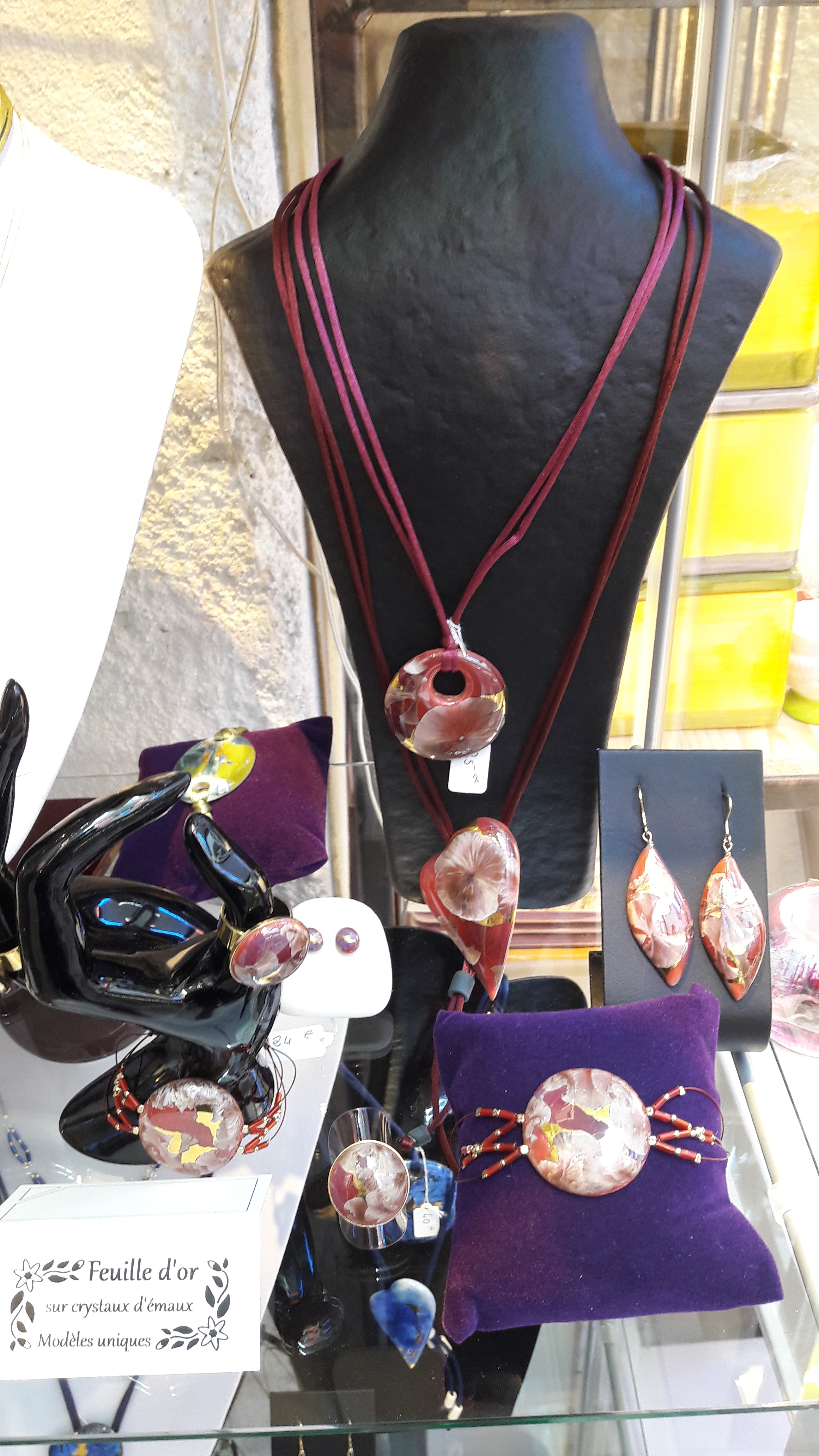 Magnifiques parures et bijoux, aux formes raffinées et couleurs harmonieuses. Légers et agréables à porter.