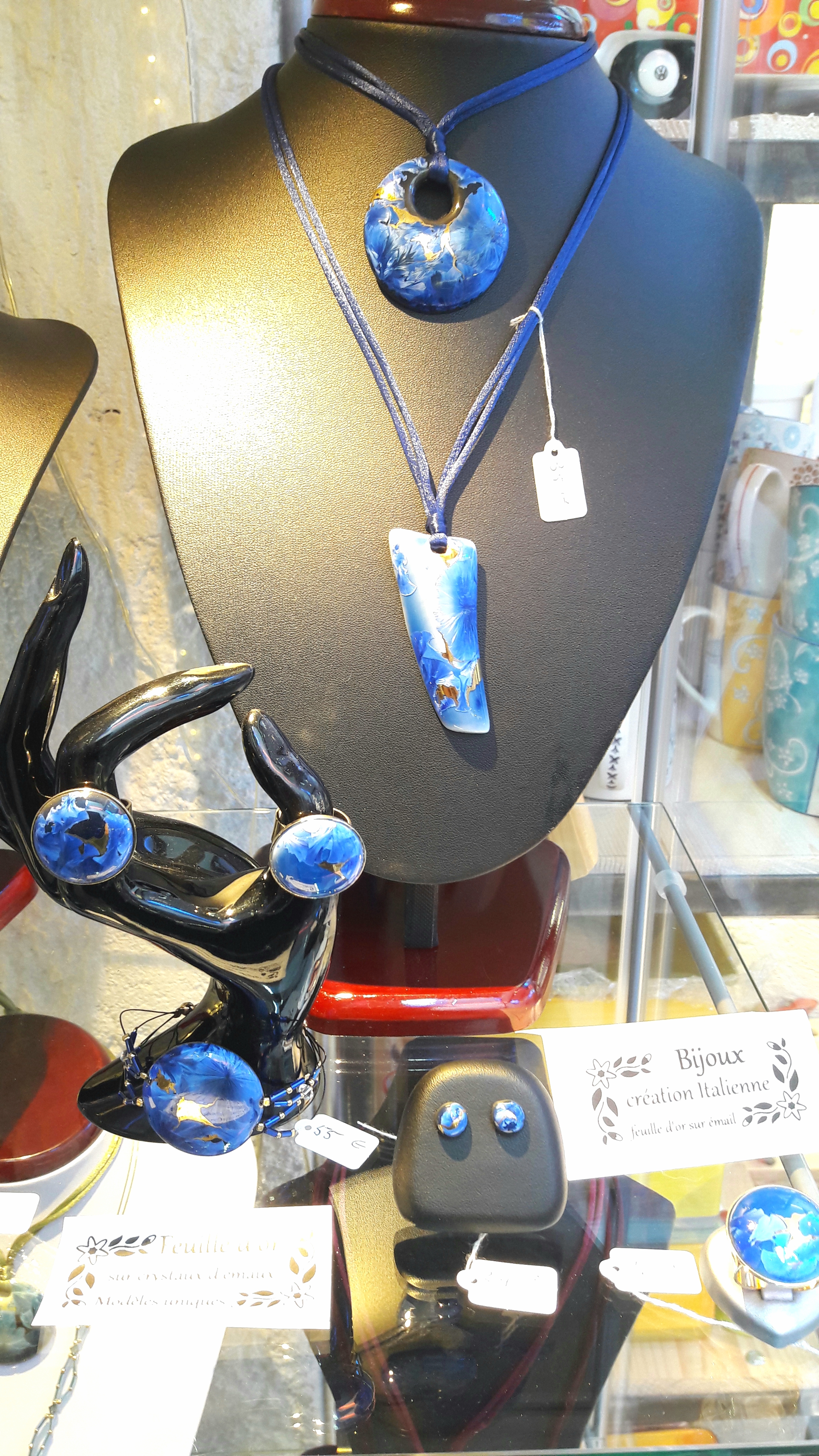 Ce sont des pièces uniques, fabriqués par un artisan joailler/céramiste en Italie, près de Florence.