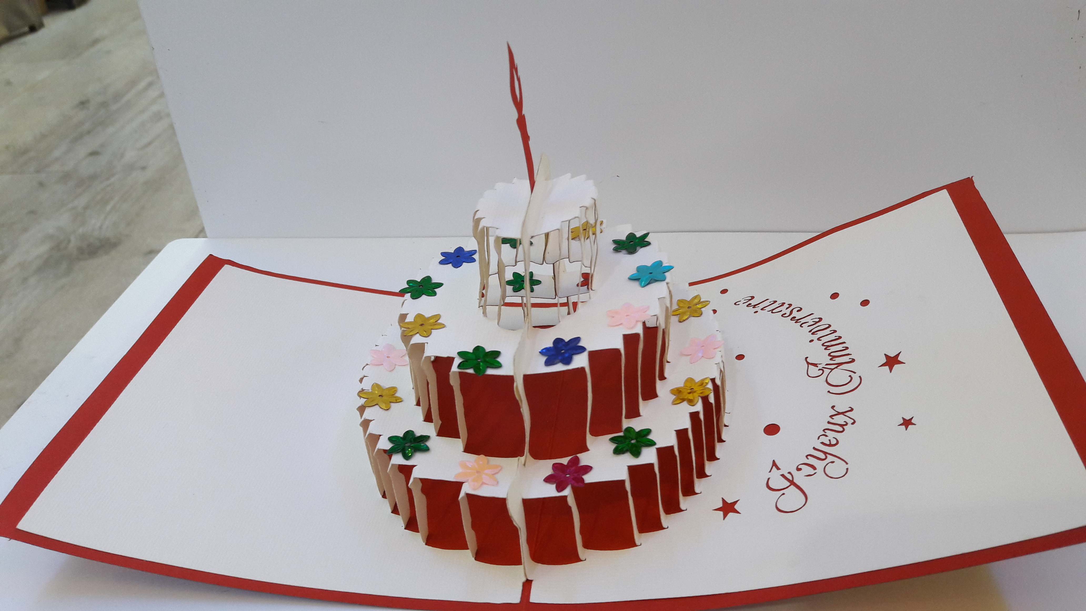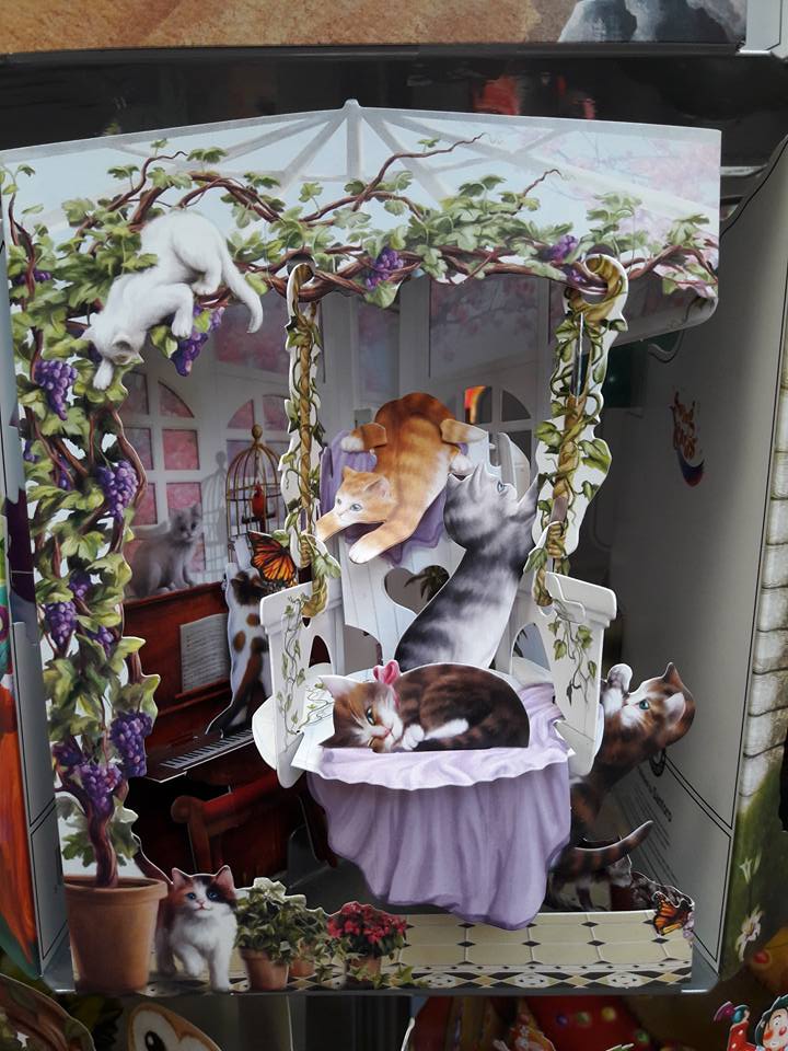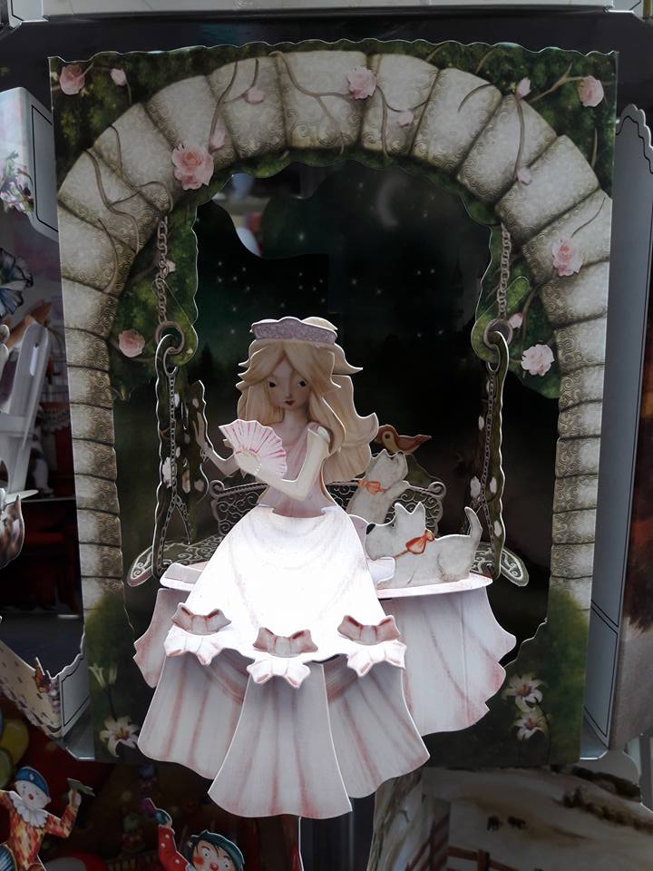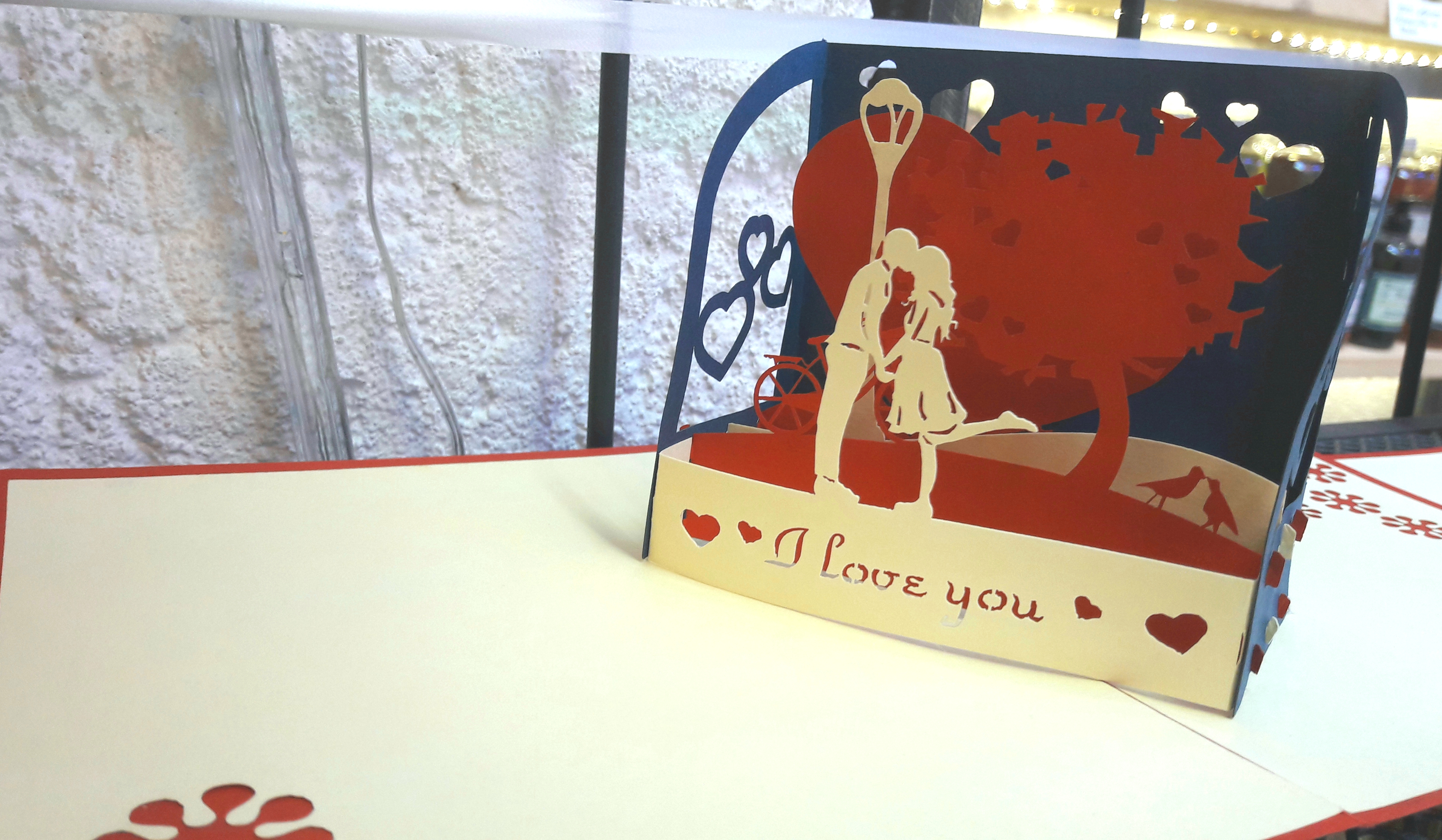 Magnifiques cartes en 3D découpées en dentelles de carton. Quand vous dépliez la carte, c’est à chaque fois une surprise avec un fabuleux décor qui se redresse du milieu de la carte.