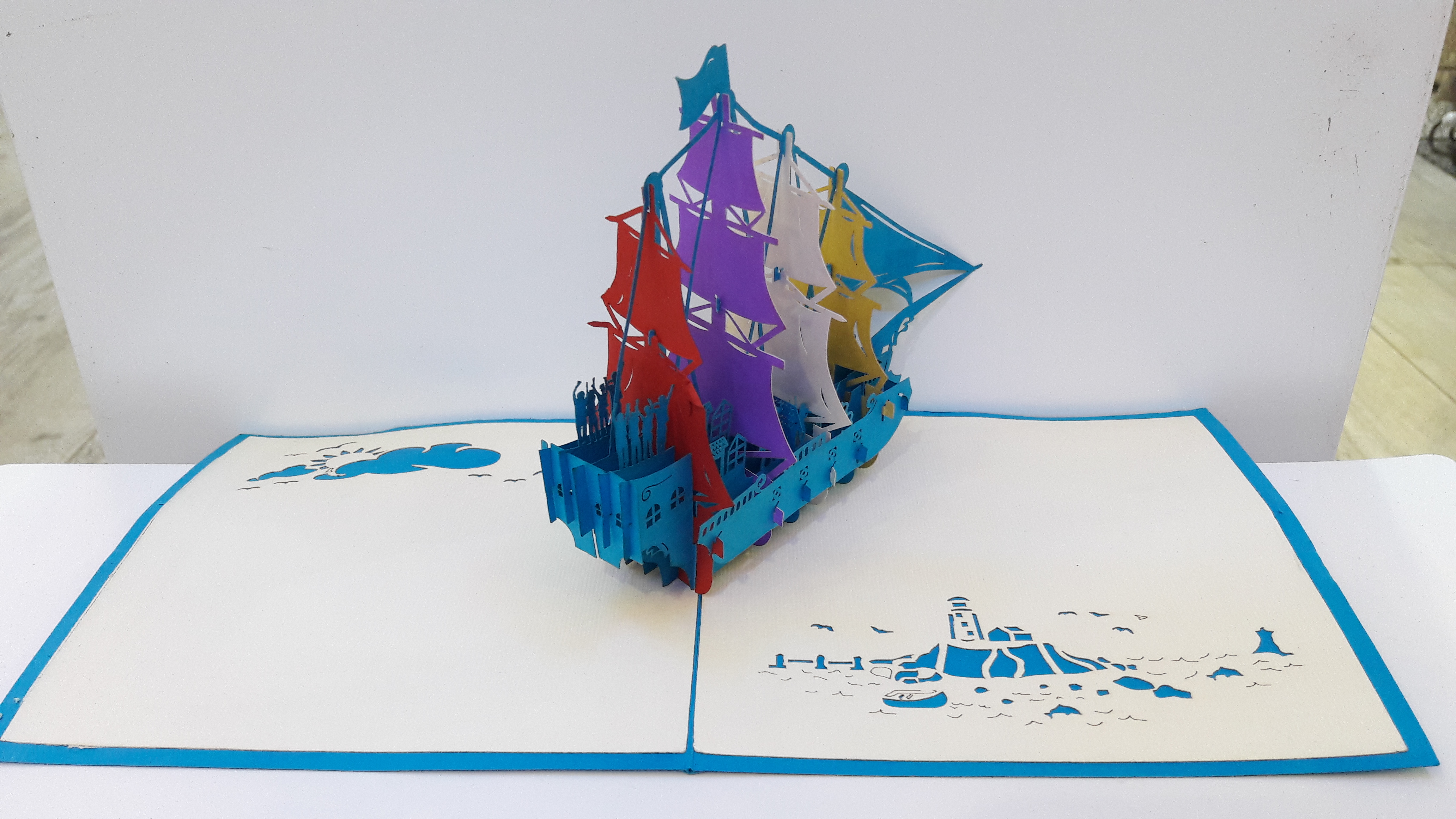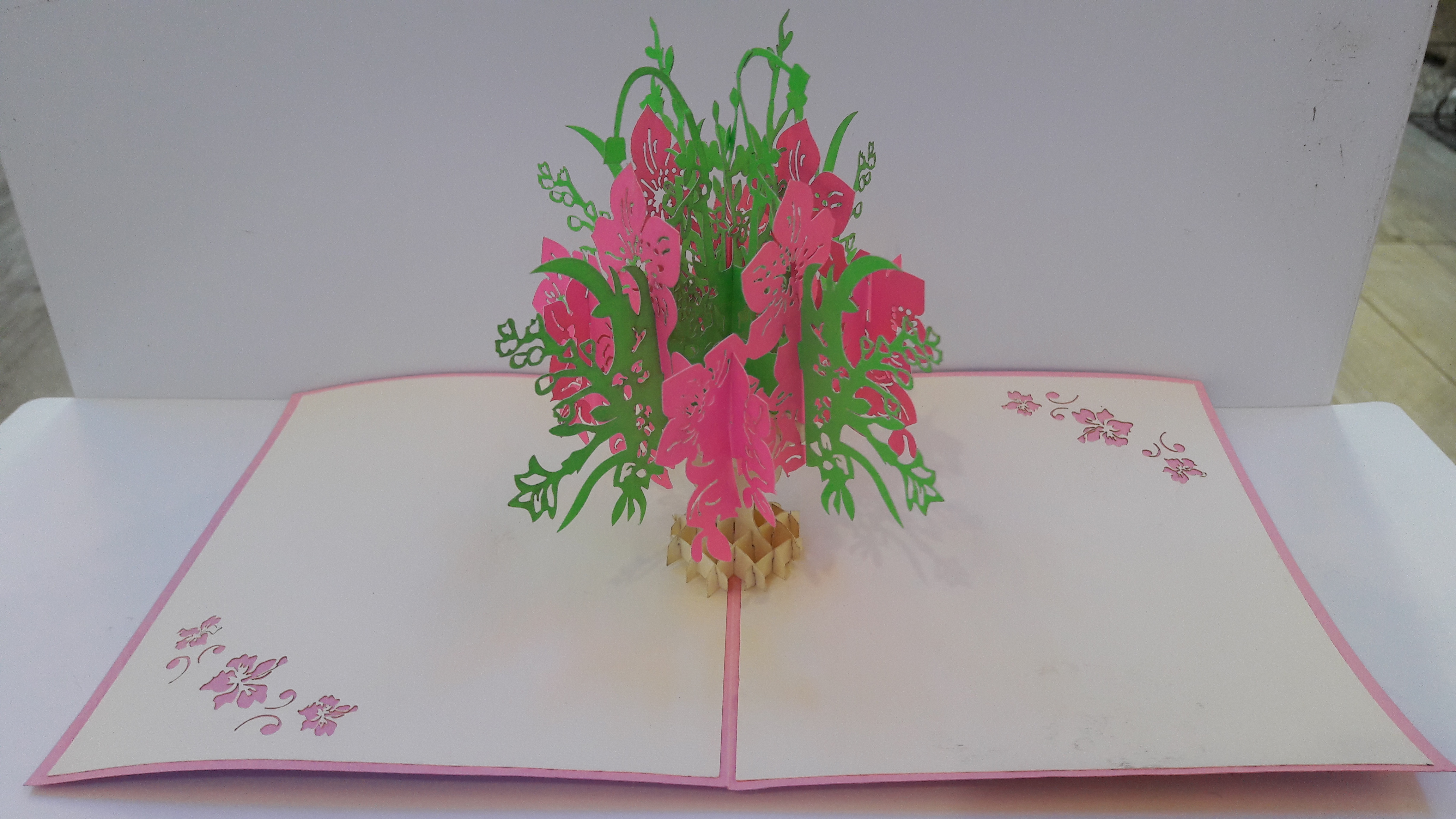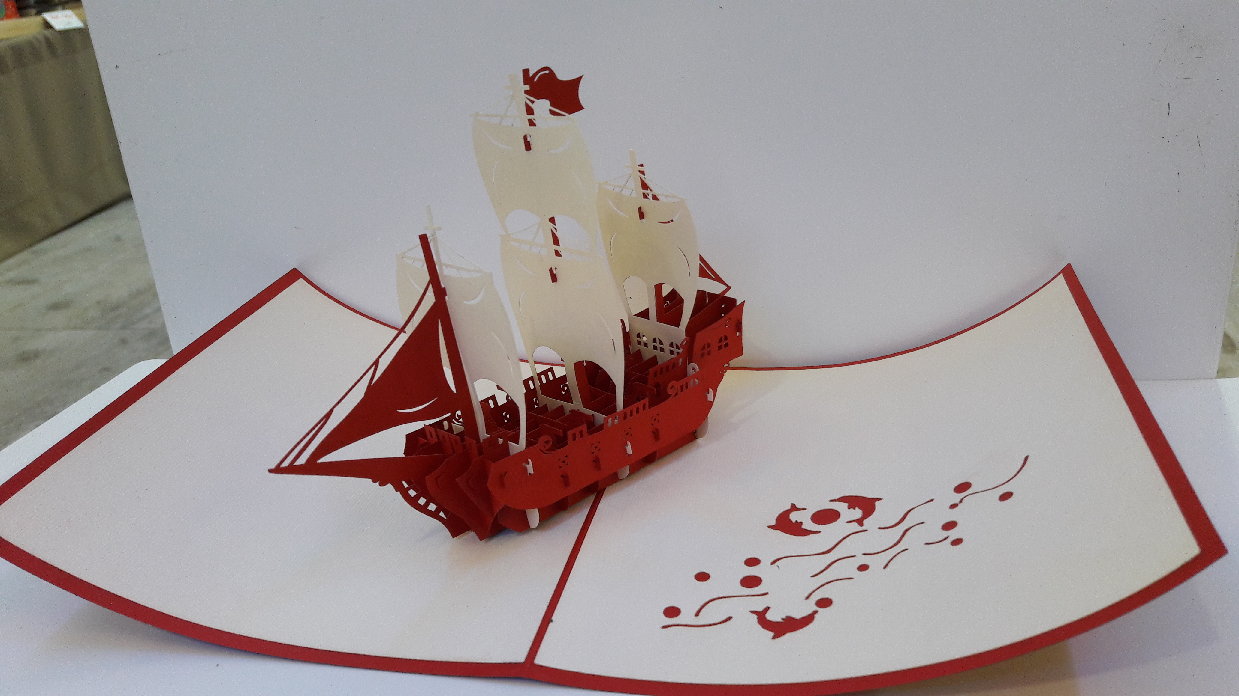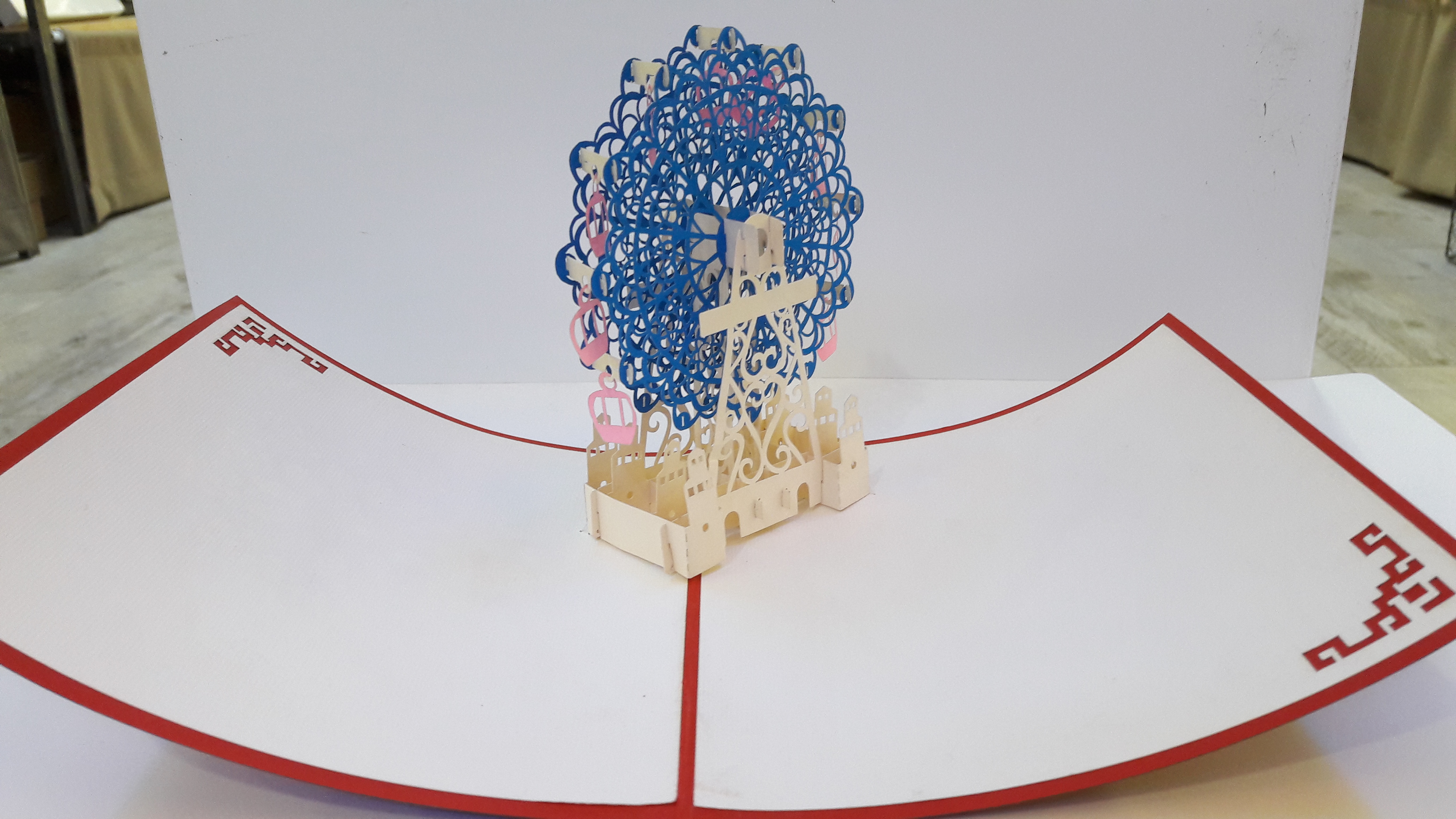 Magnifiques cartes en 3D découpées en dentelles de carton. Quand vous dépliez la carte, c’est à chaque fois une surprise avec un fabuleux décor qui se redresse du milieu de la carte.