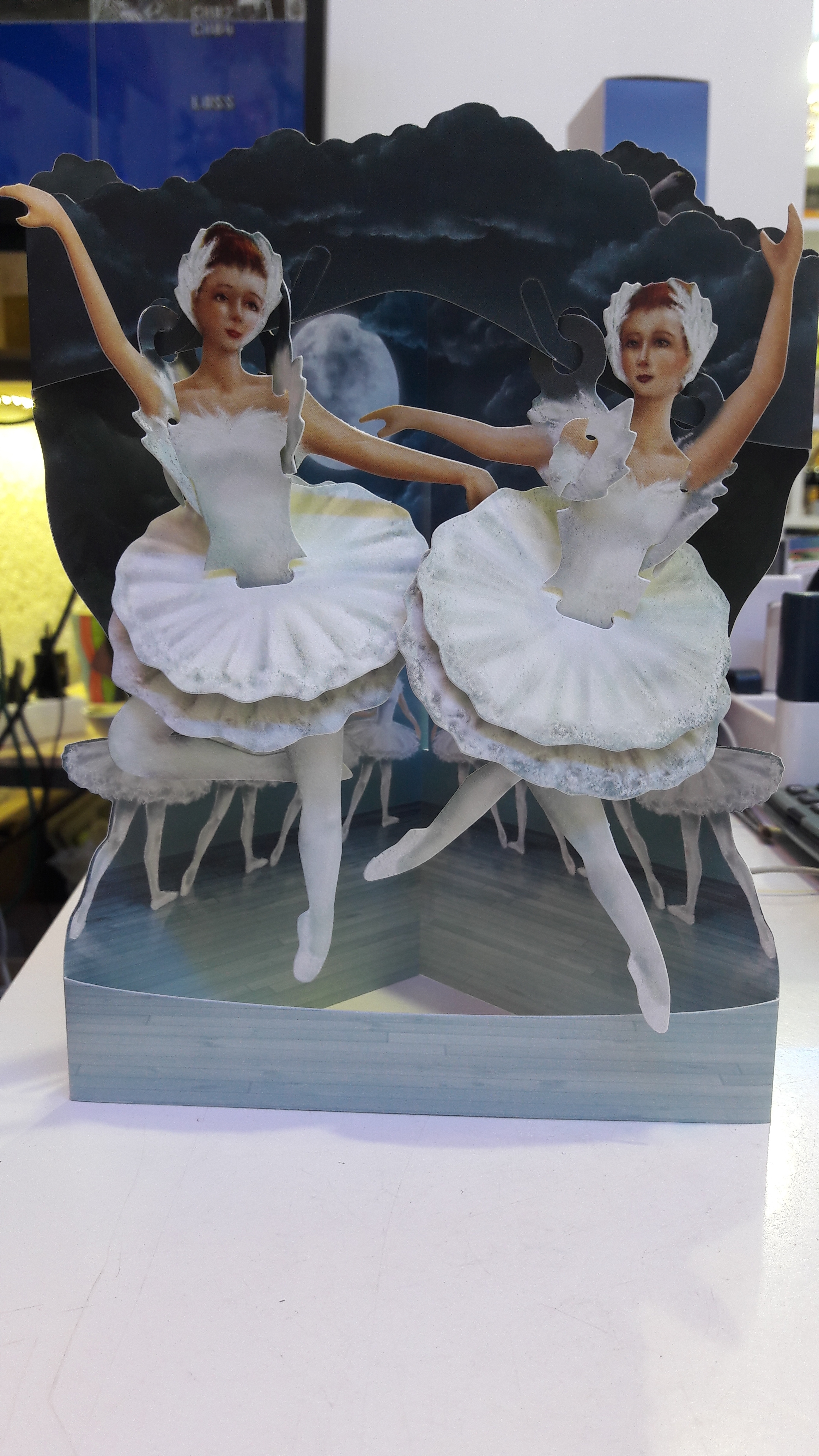 Le recto de la carte comporte également une image en dentelle découpée à plat qui rappelle le décor qui se trouve à l’intérieur.