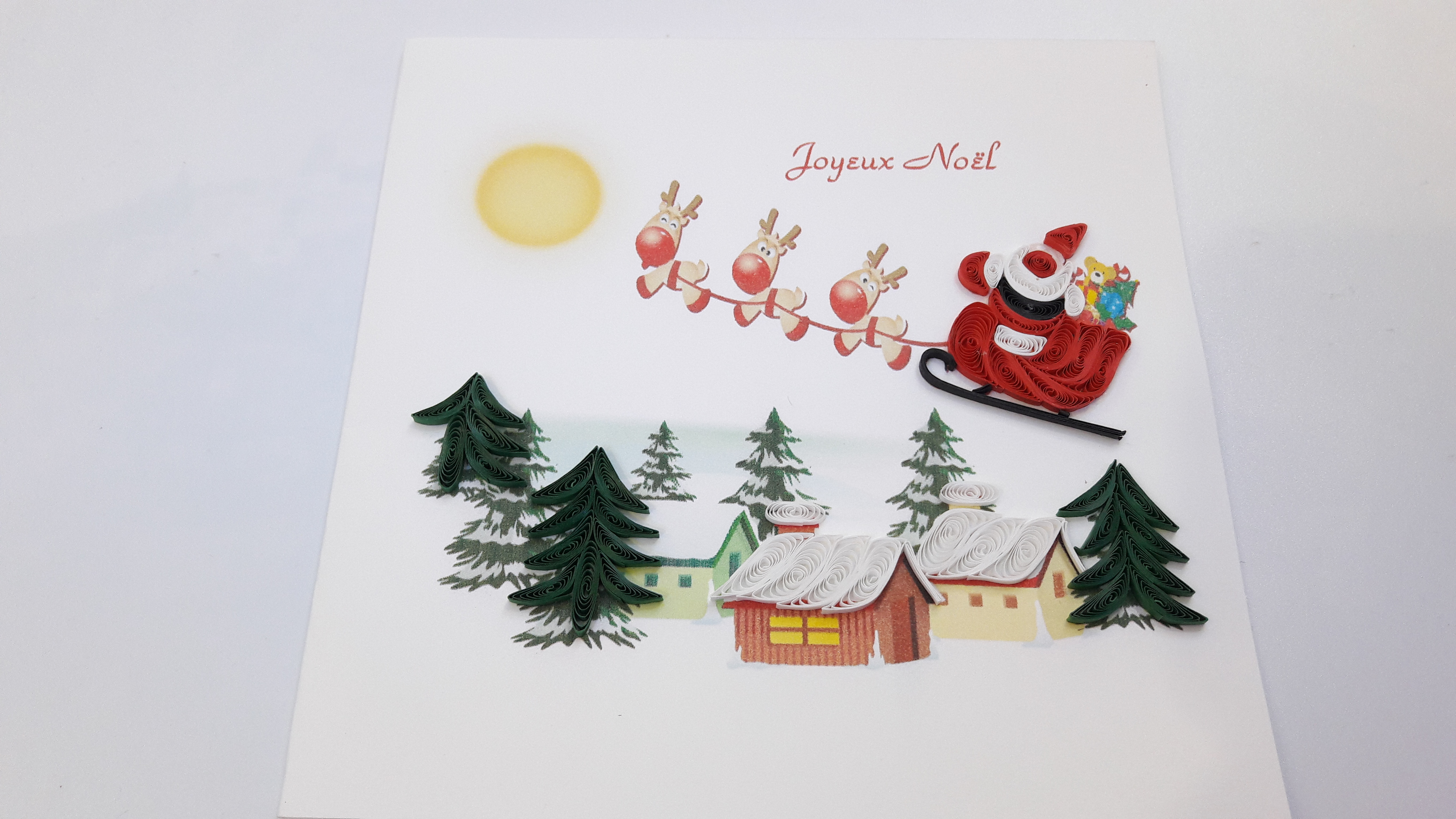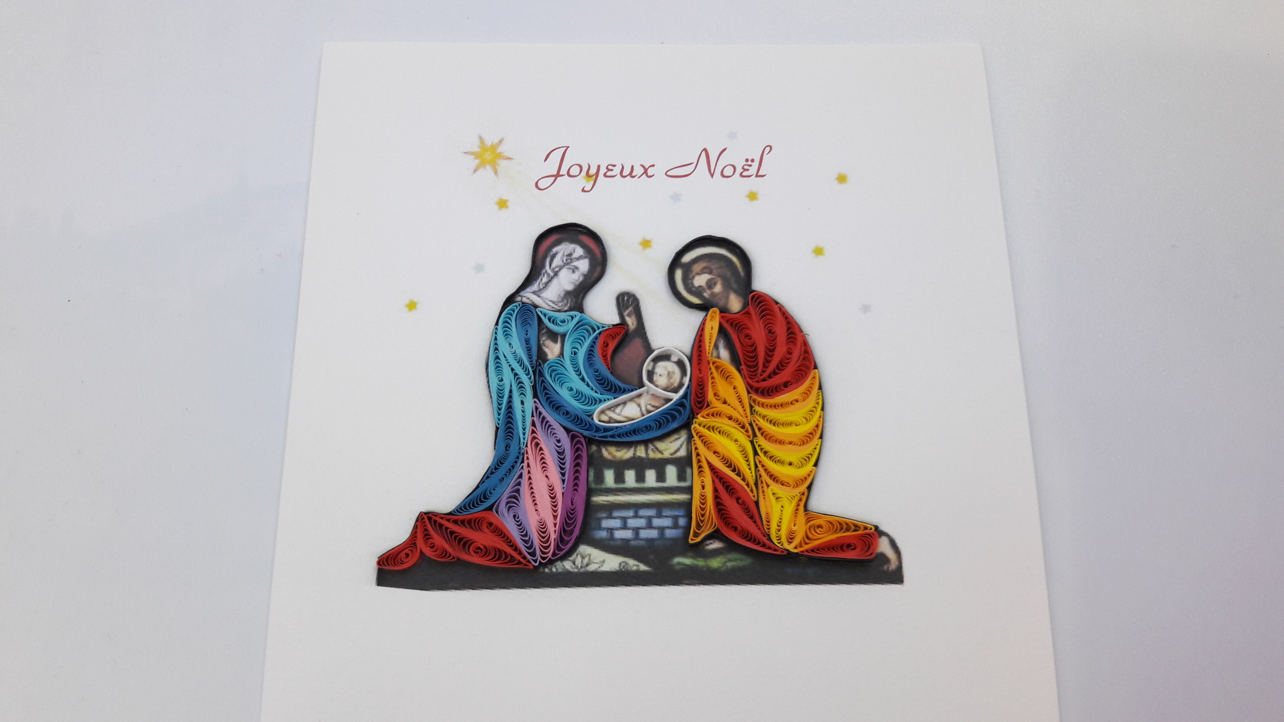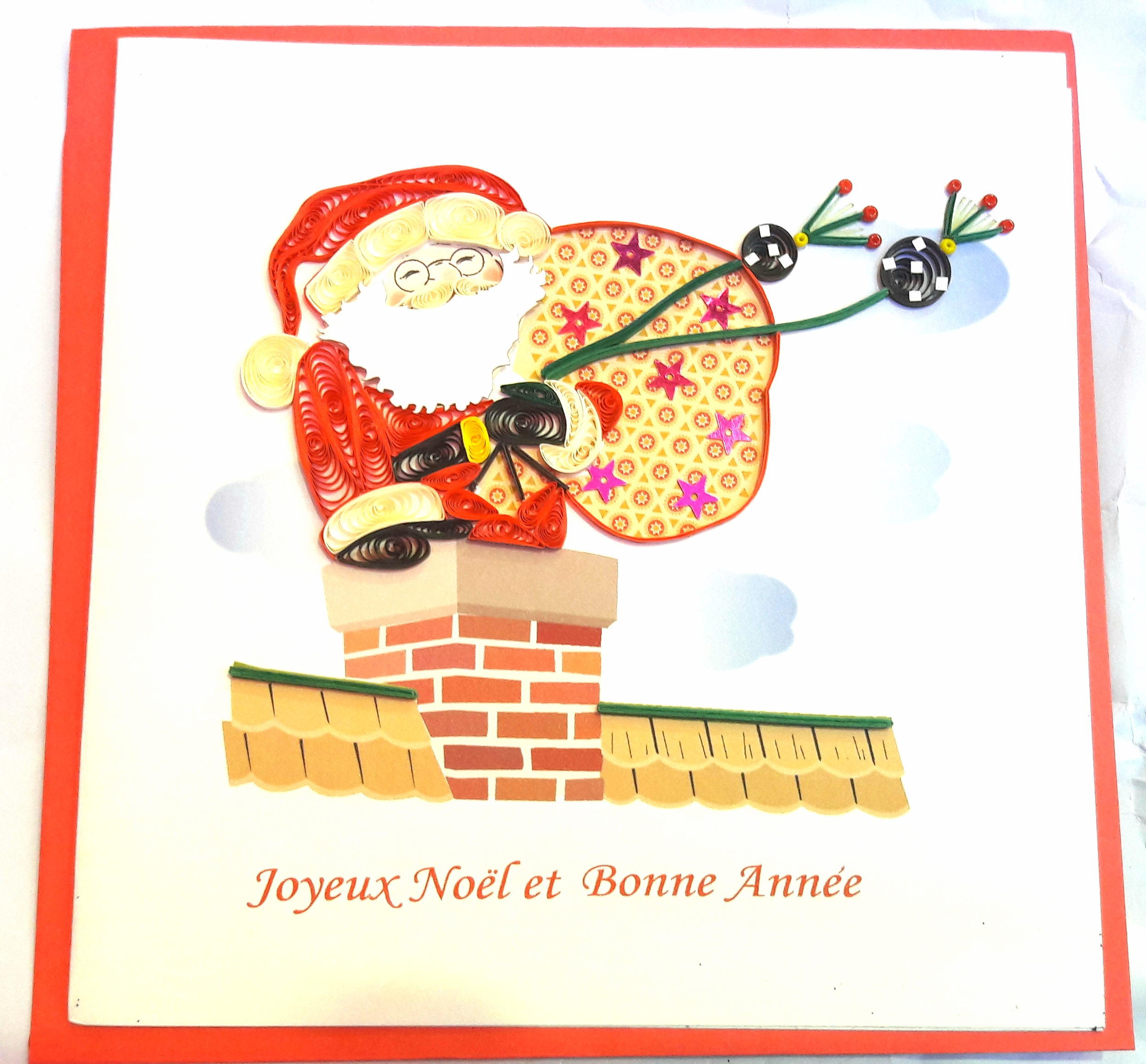 Très belles cartes cartonnées en relief, fabriquées à la main. Le dessin est en relief réalisé en petits rouleaux de papiers.