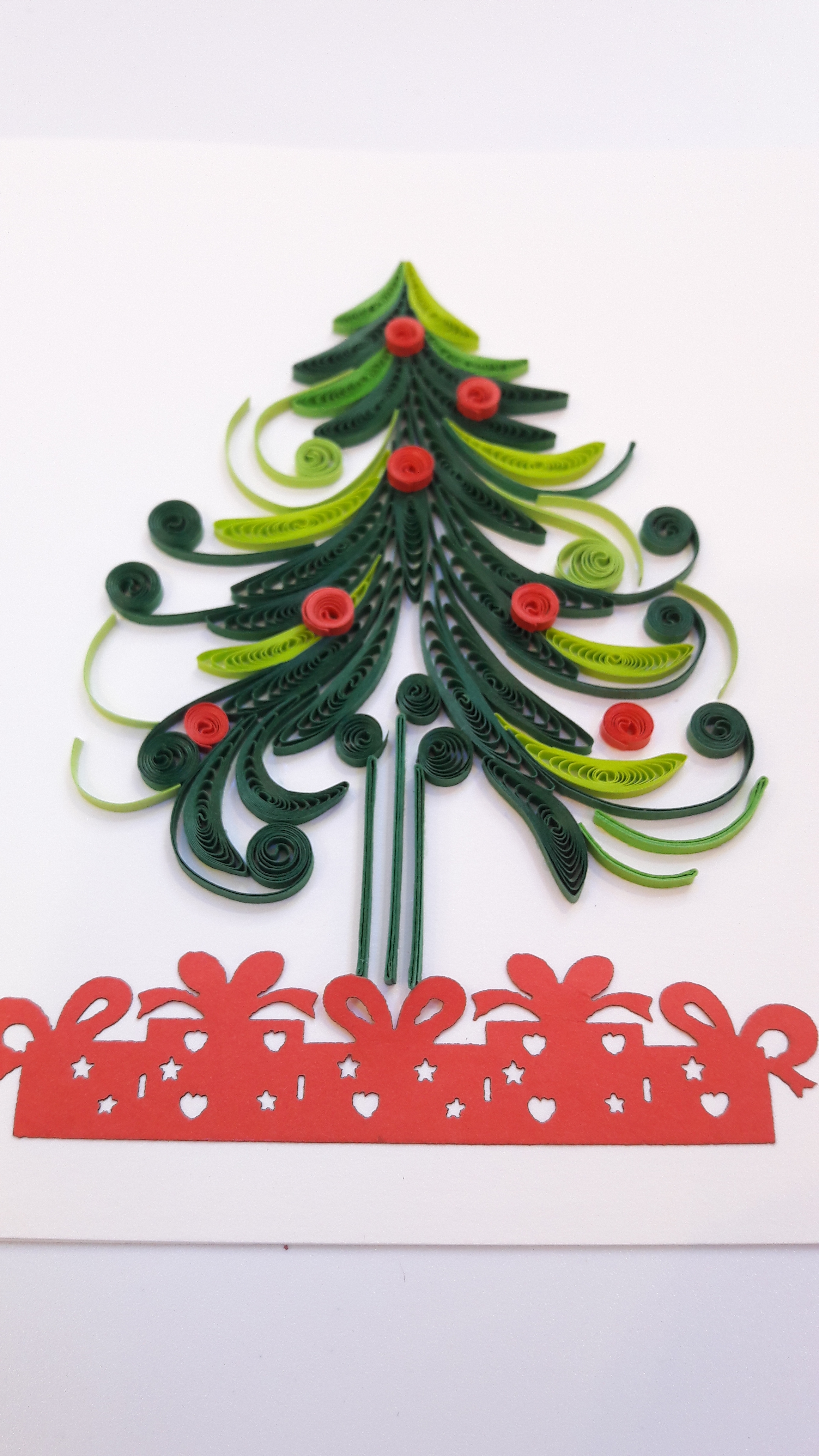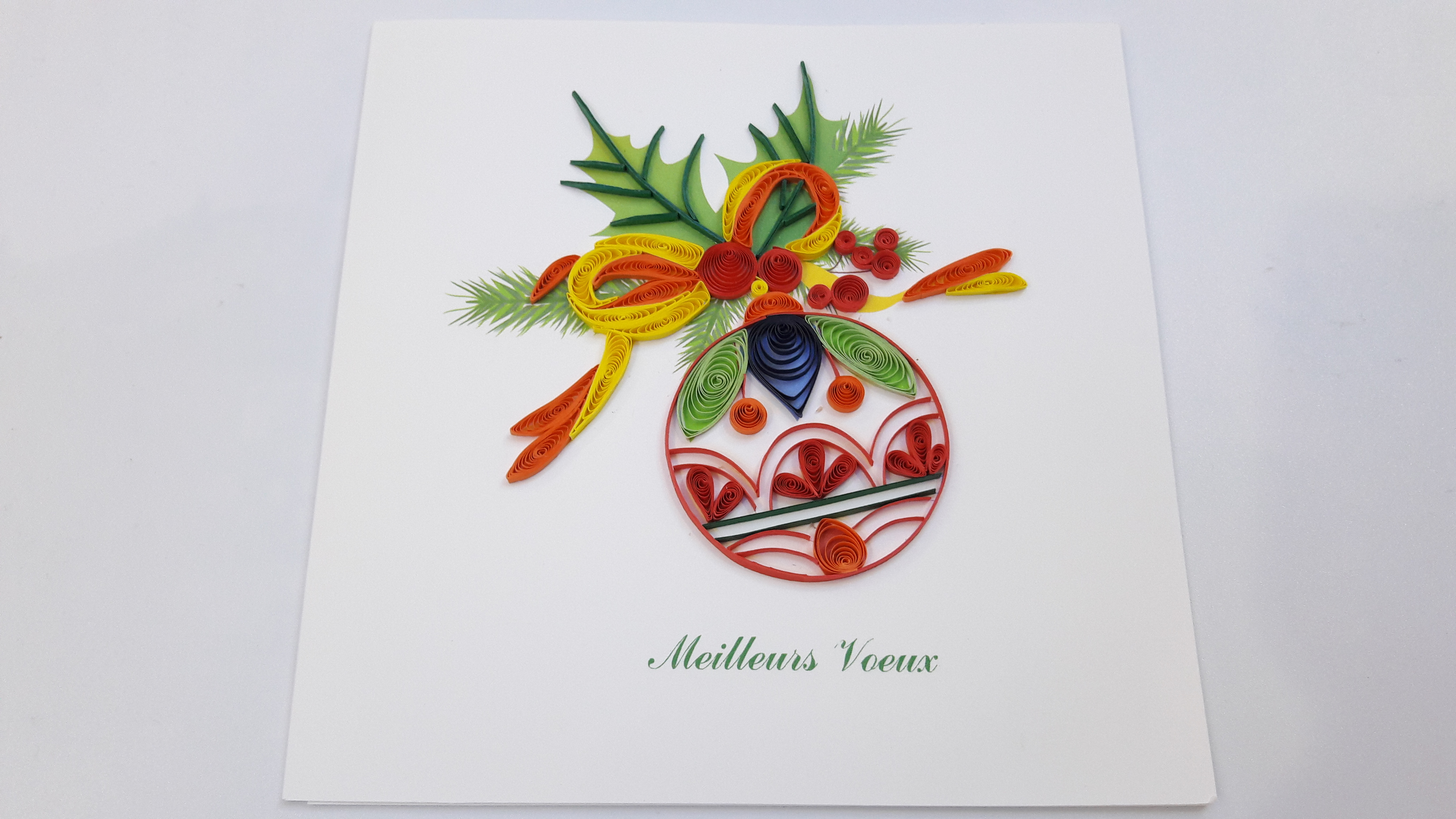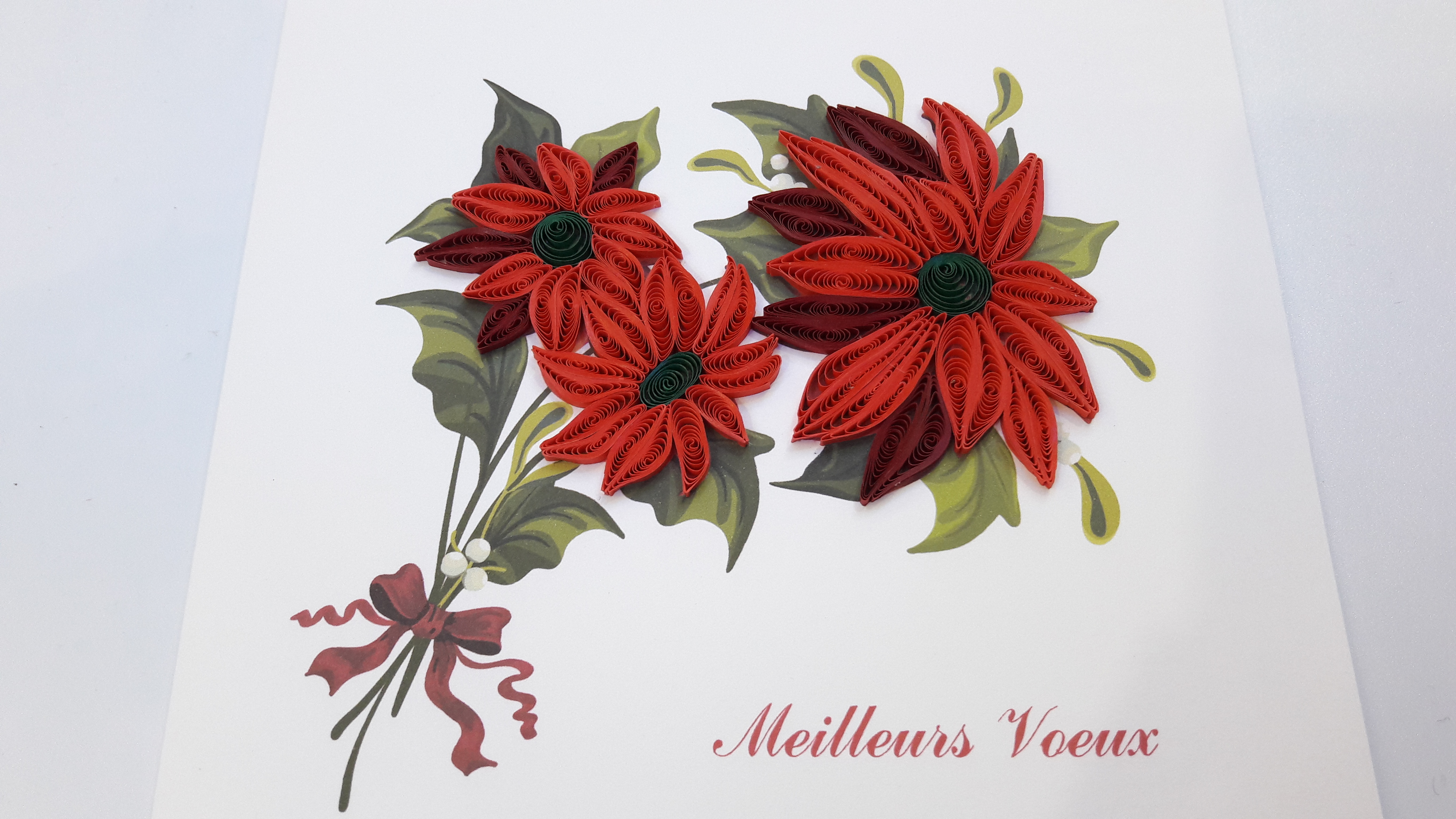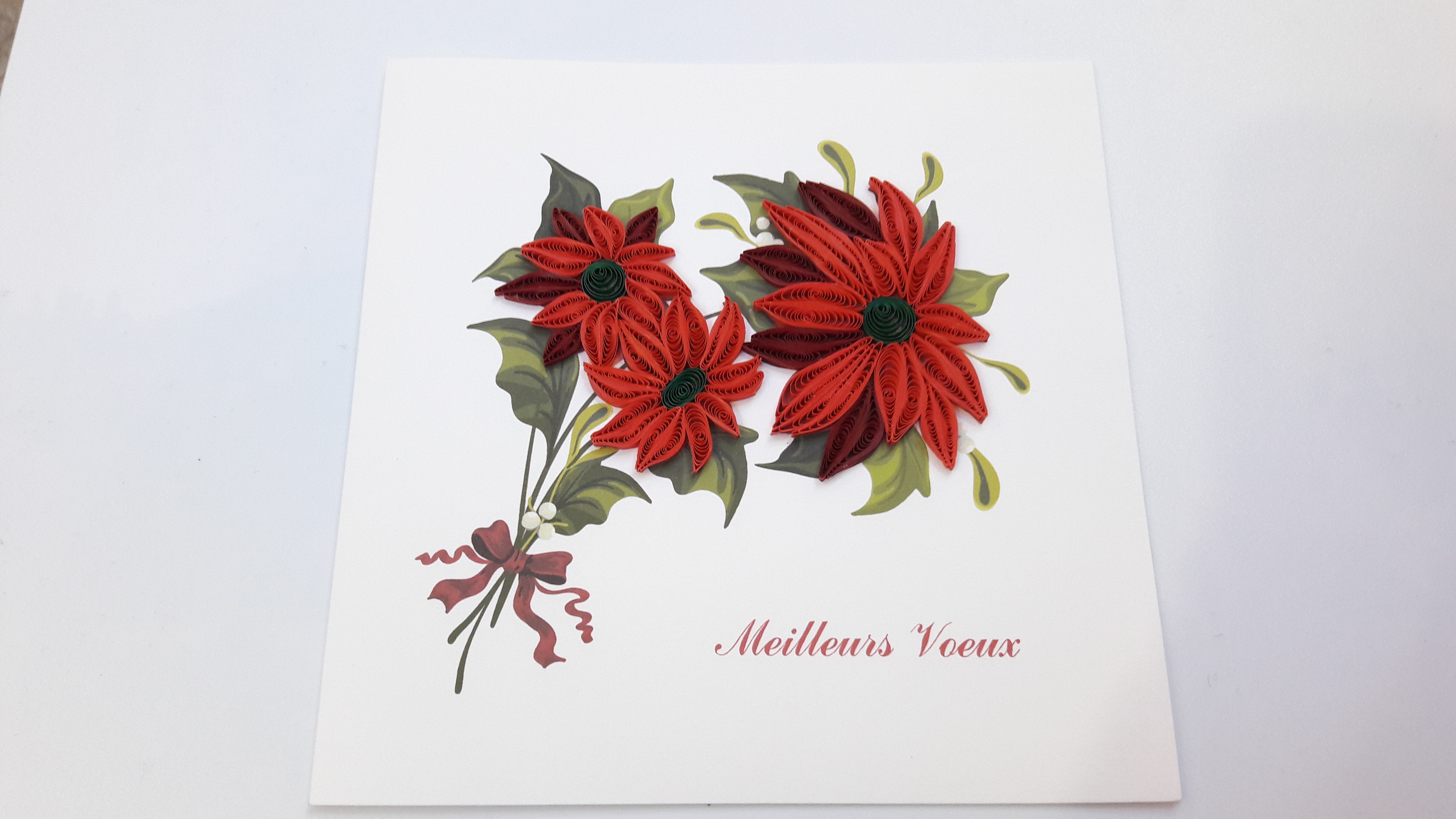 Très belles cartes cartonnées en relief, fabriquées à la main. Le dessin est en relief réalisé en petits rouleaux de papiers.