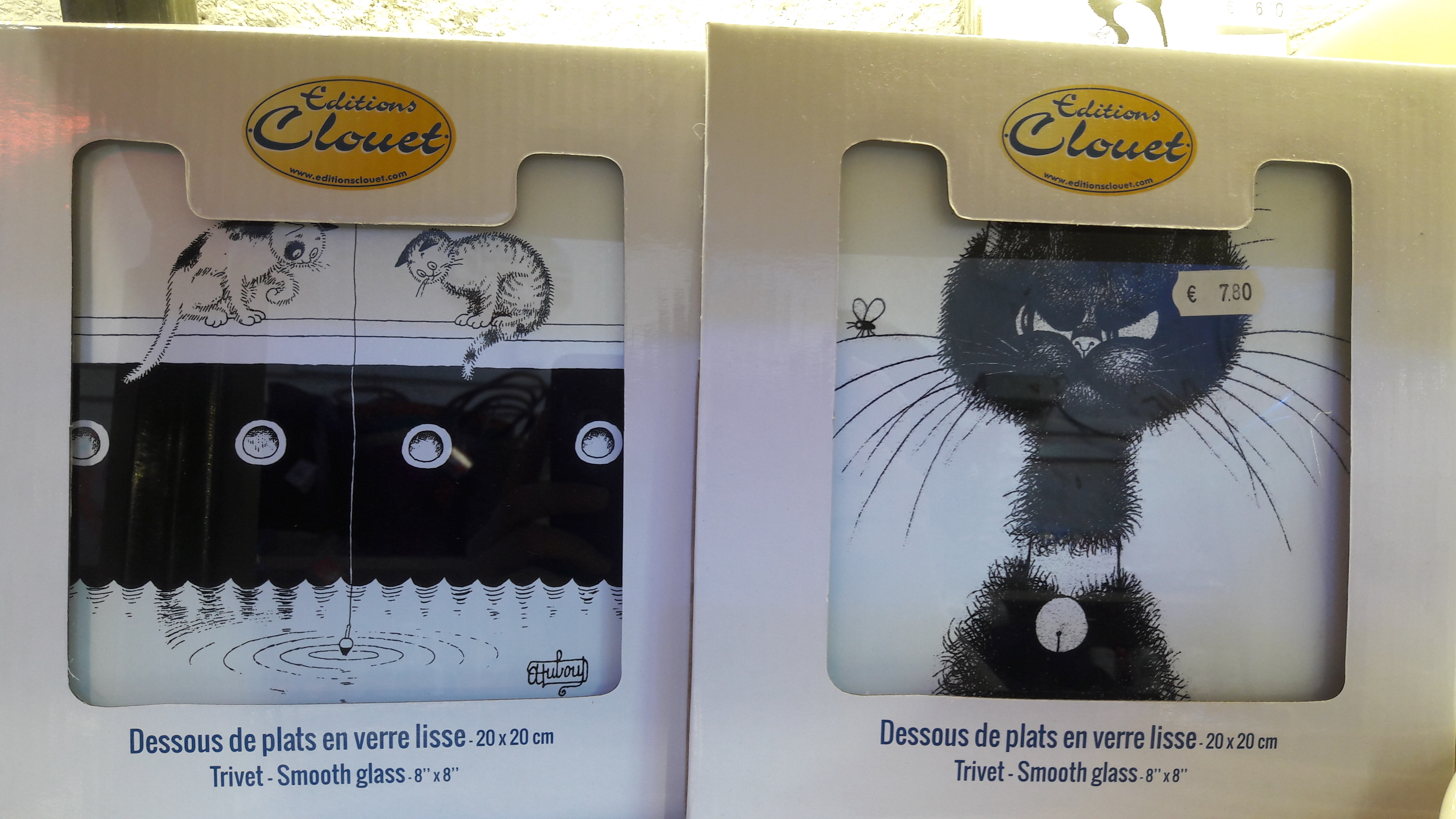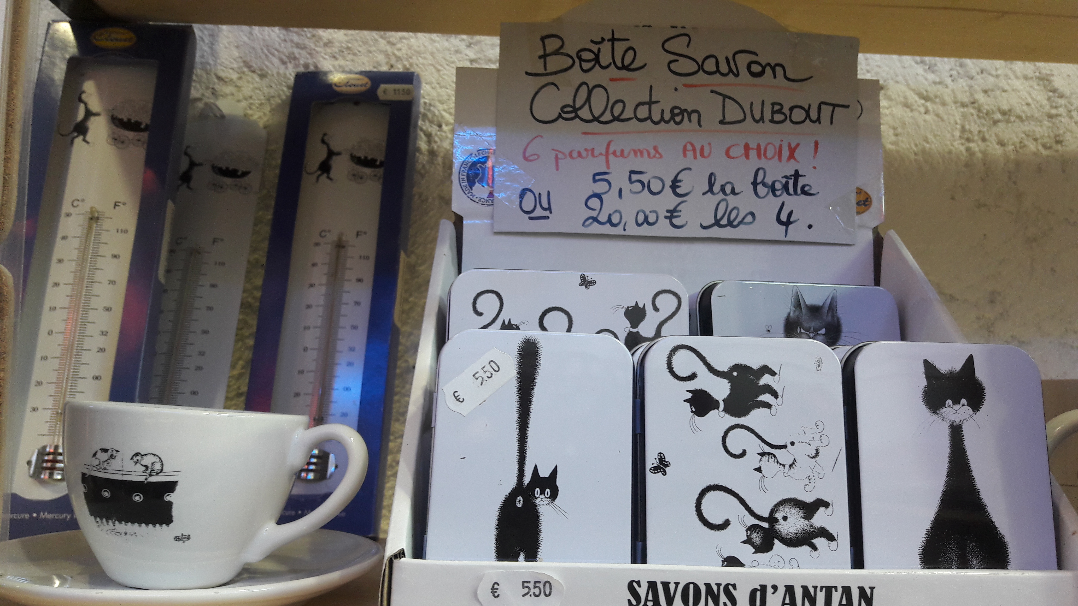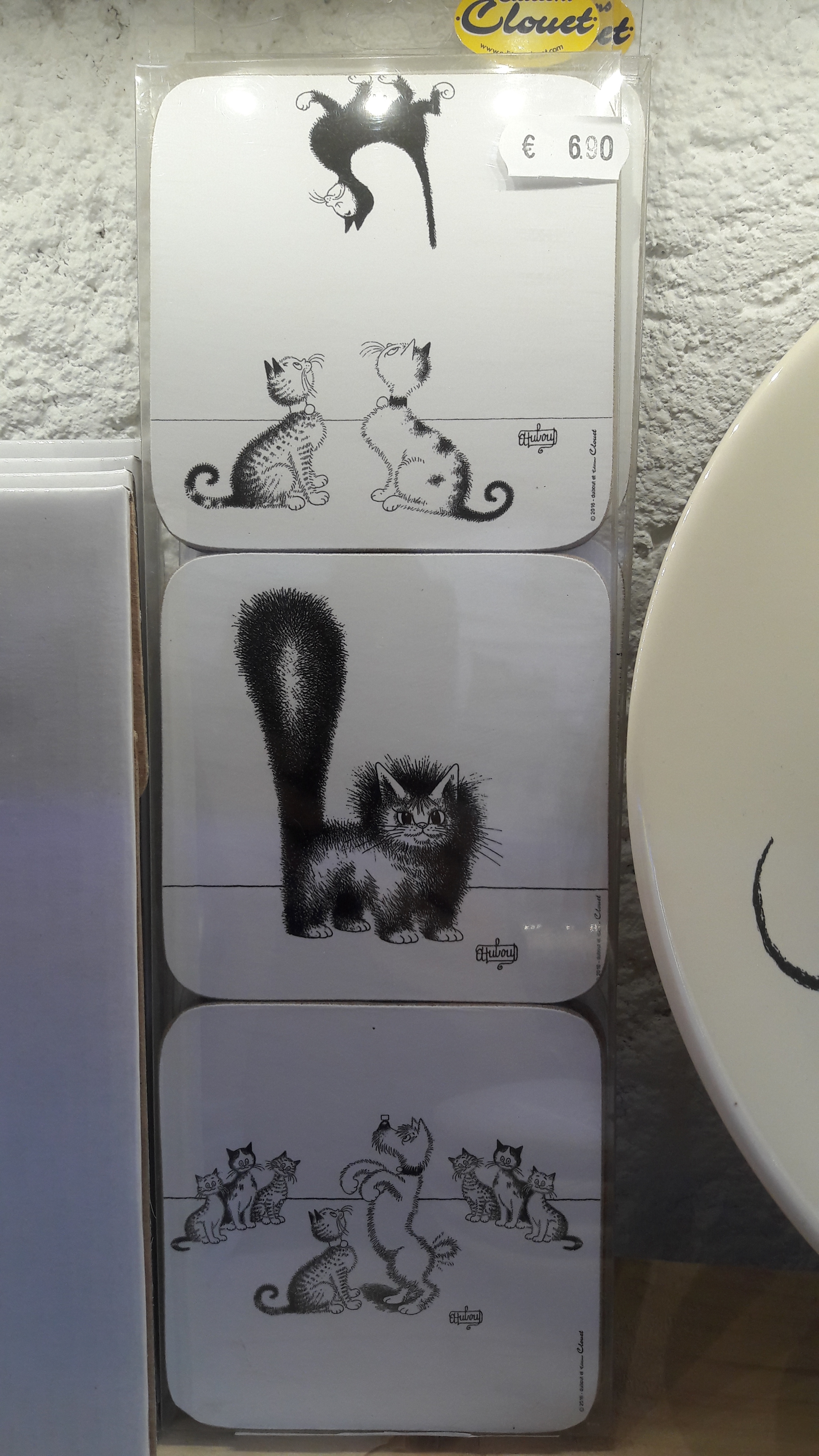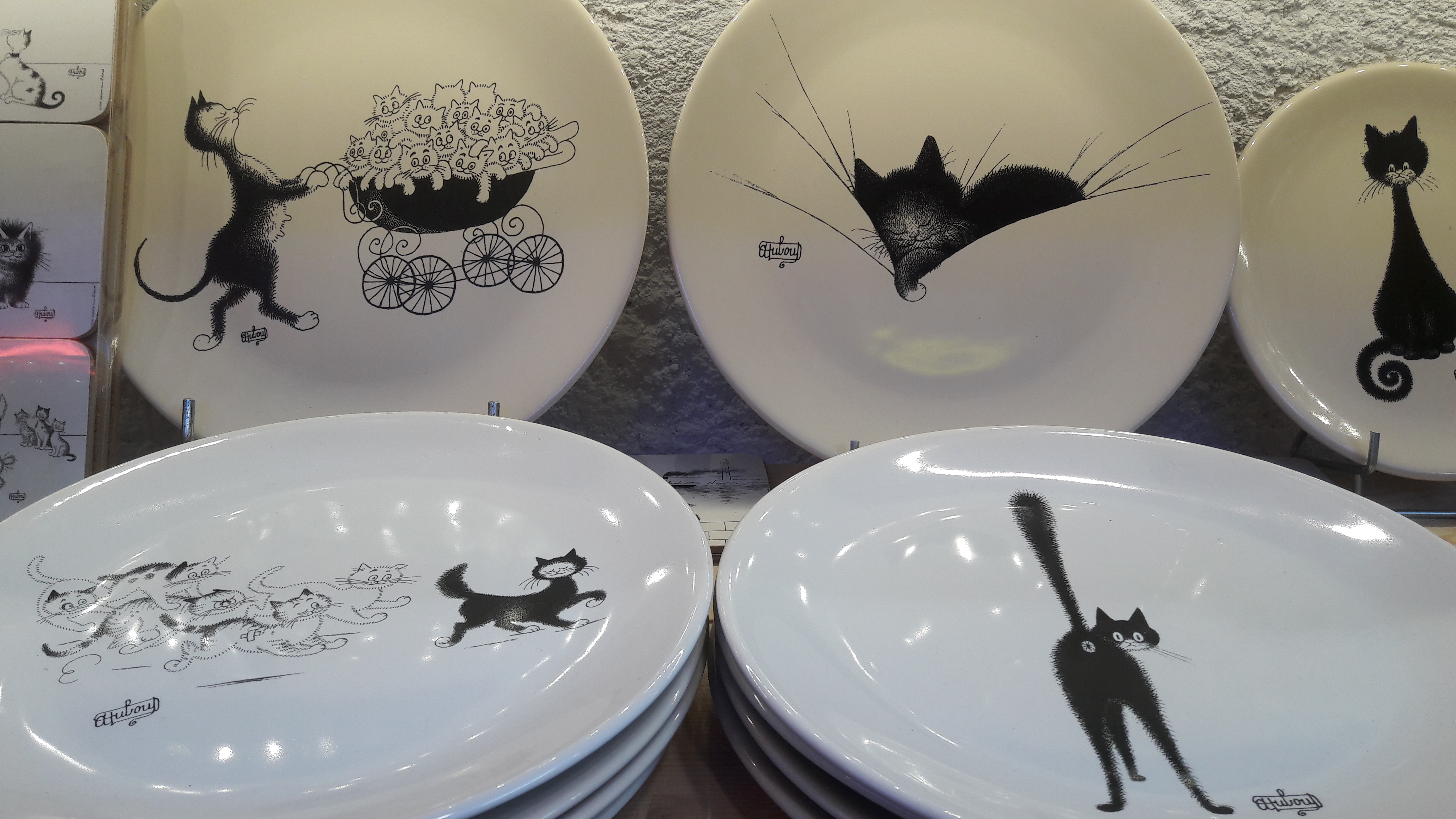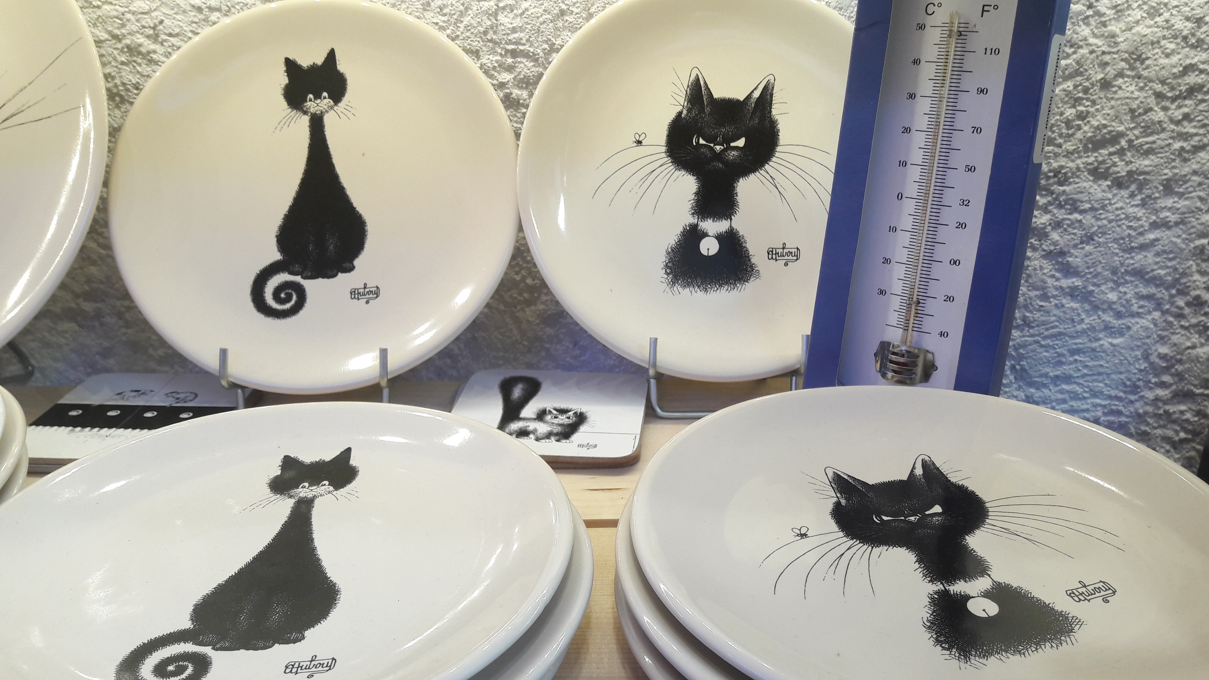 Voici la belle collection de l’artiste DUBOUT, des chats dans toutes leurs expressions, sur des articles d’arts de la table : assiettes, dessous de verre, magnet pour le frigo, mugs, tasses à café, planche à découper, set de table…