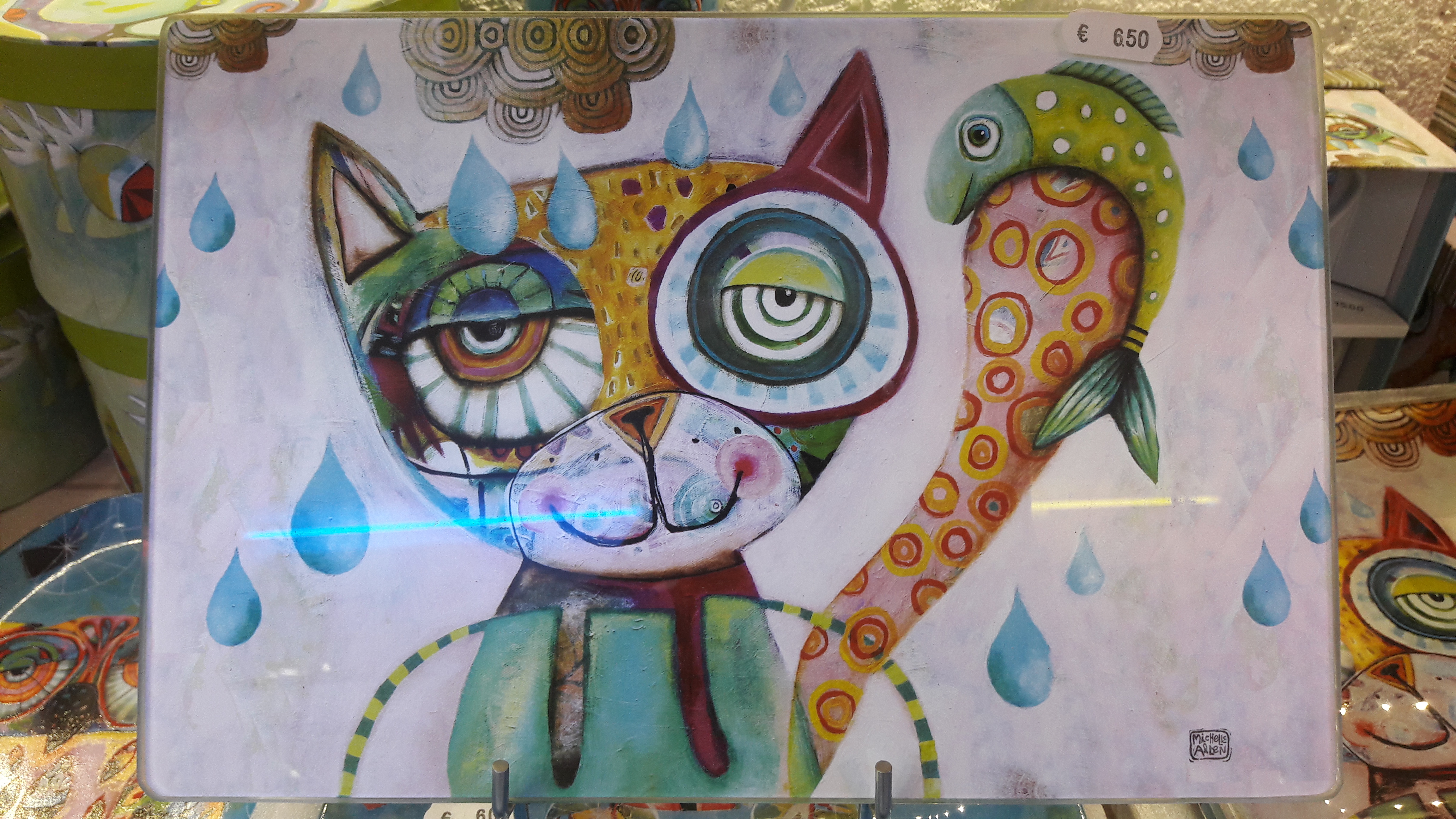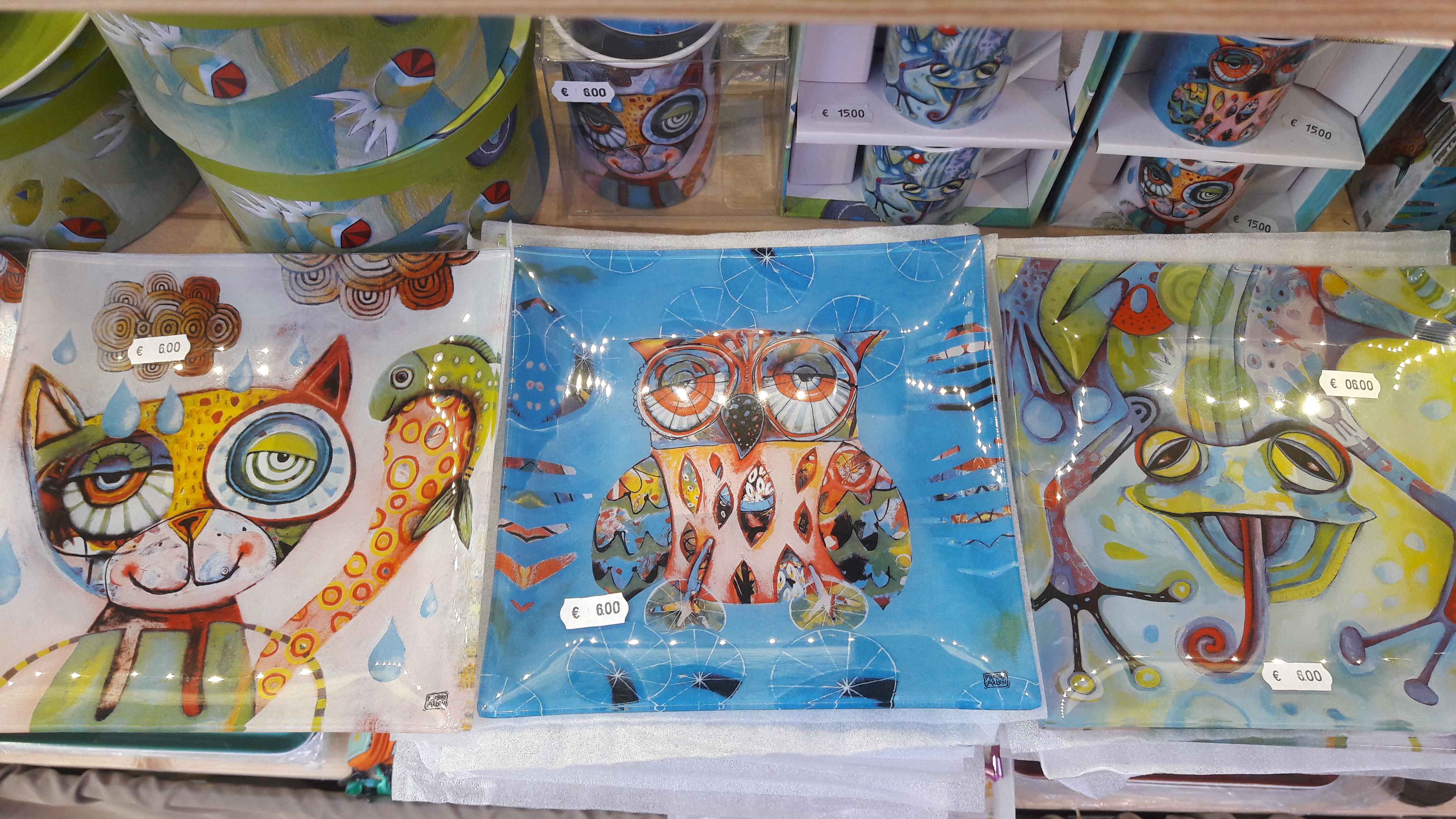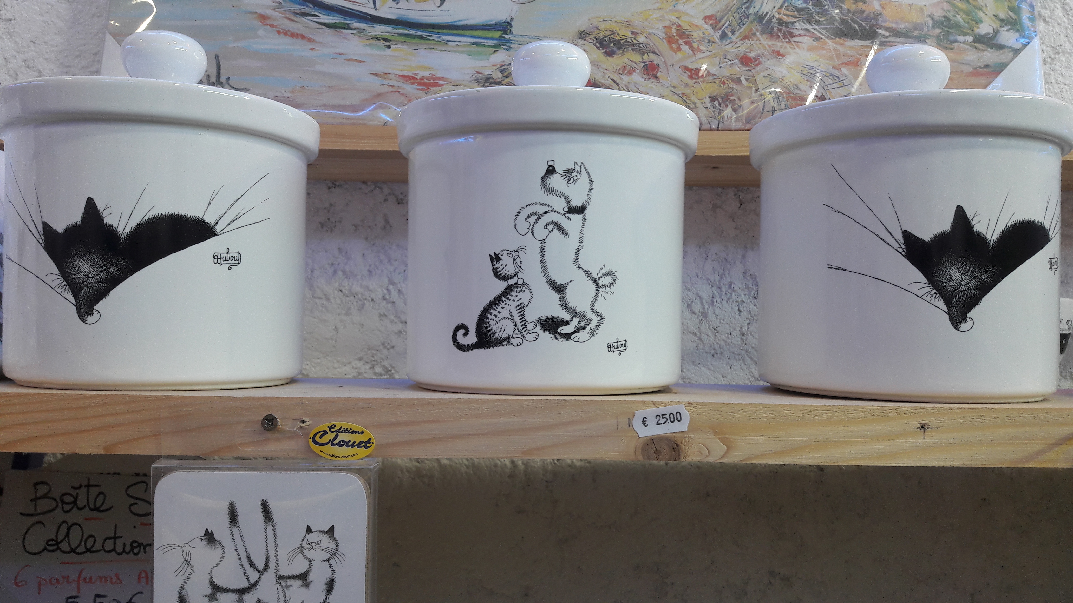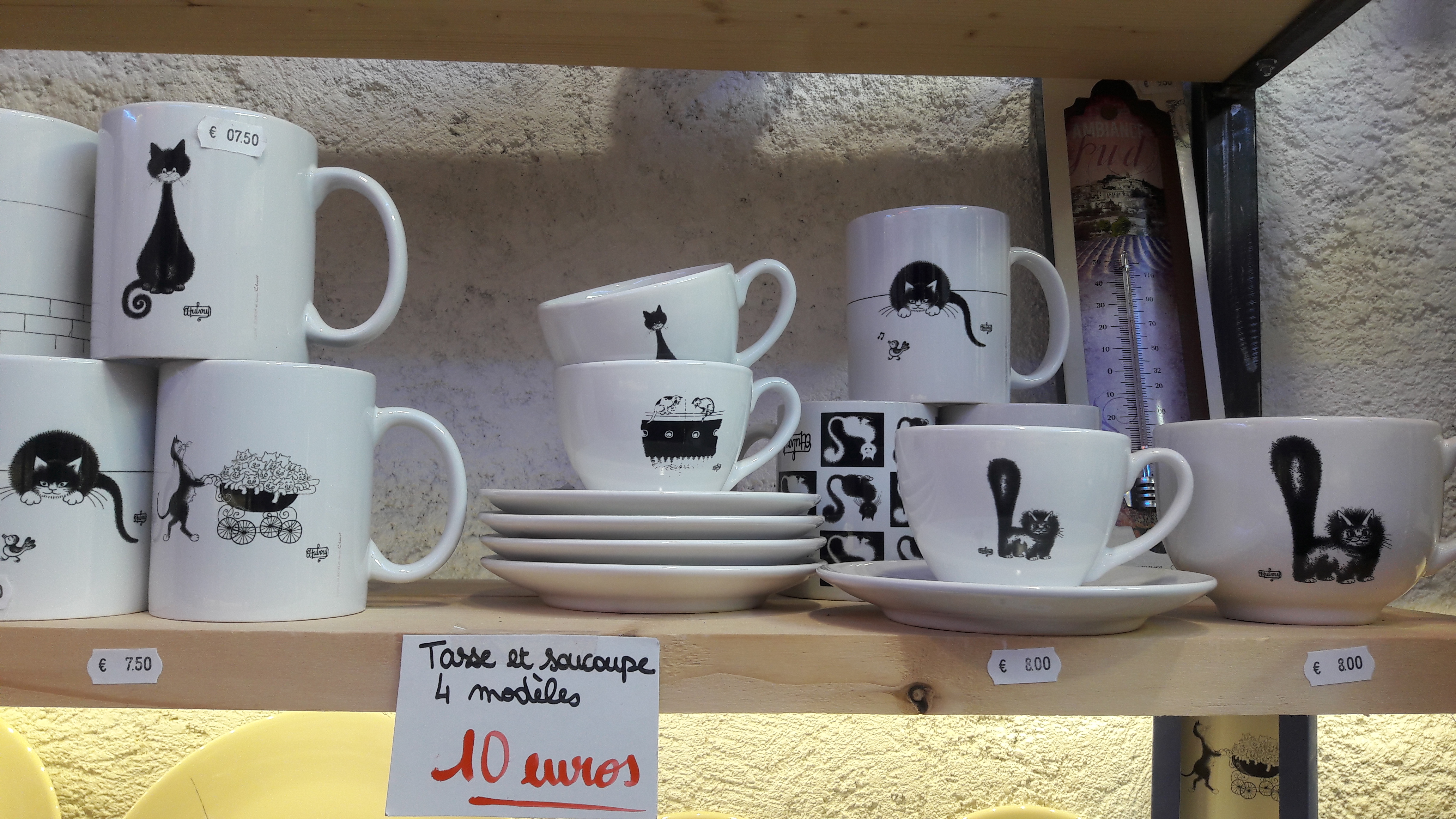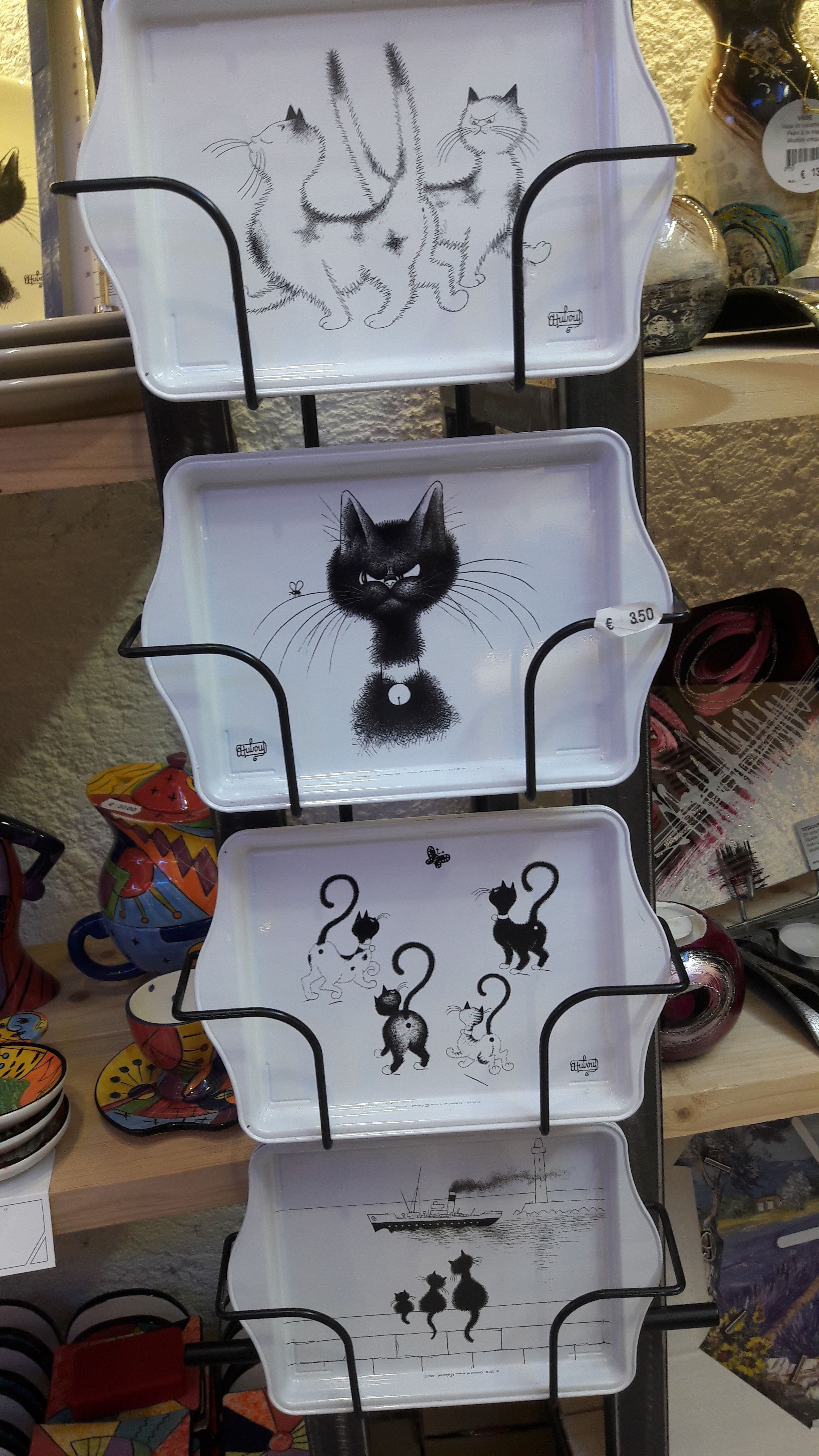 Voici la belle collection de l’artiste DUBOUT, des chats dans toutes leurs expressions, sur des articles d’arts de la table : assiettes, dessous de verre, magnet pour le frigo, mugs, tasses à café, planche à découper, set de table…