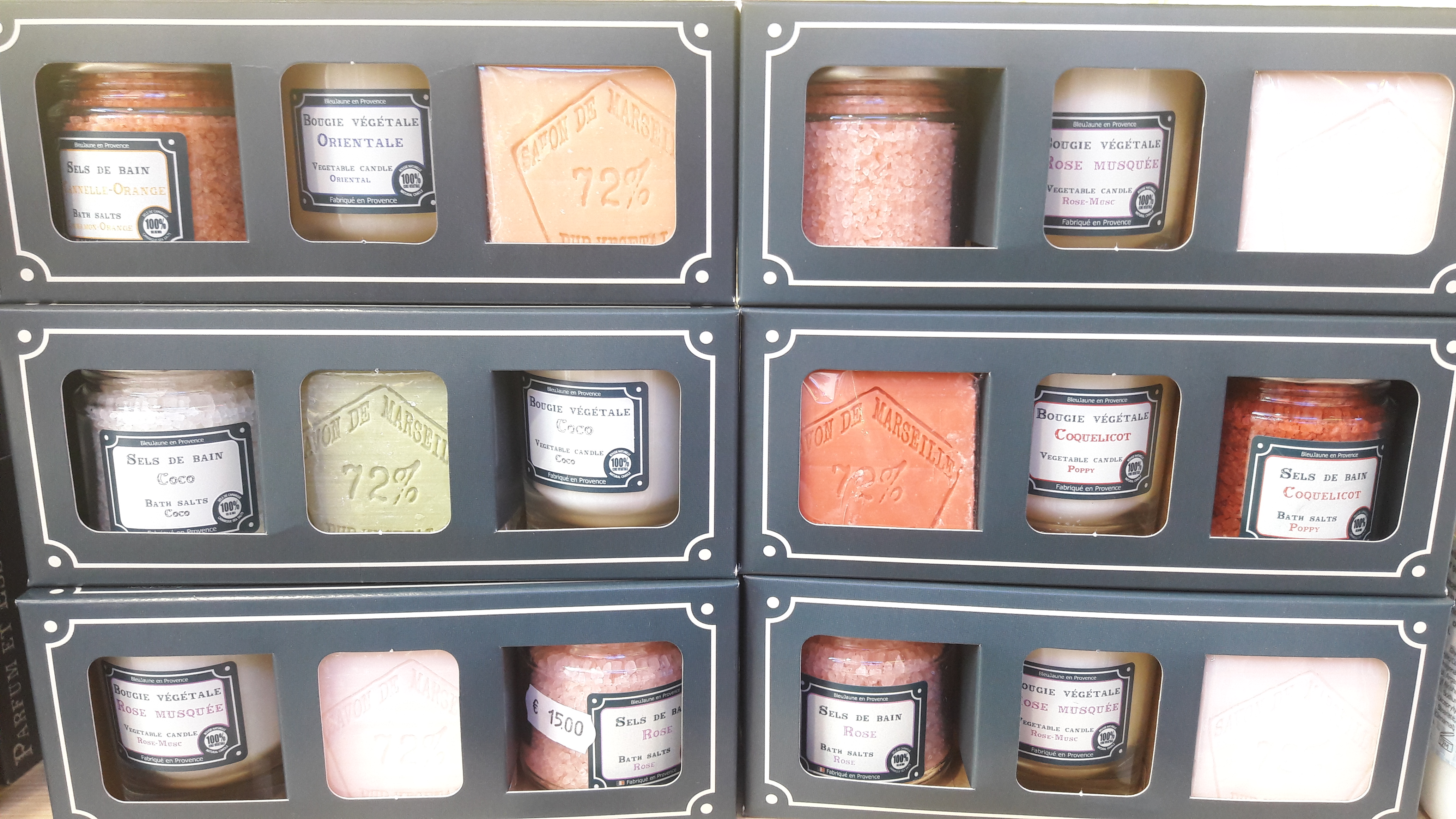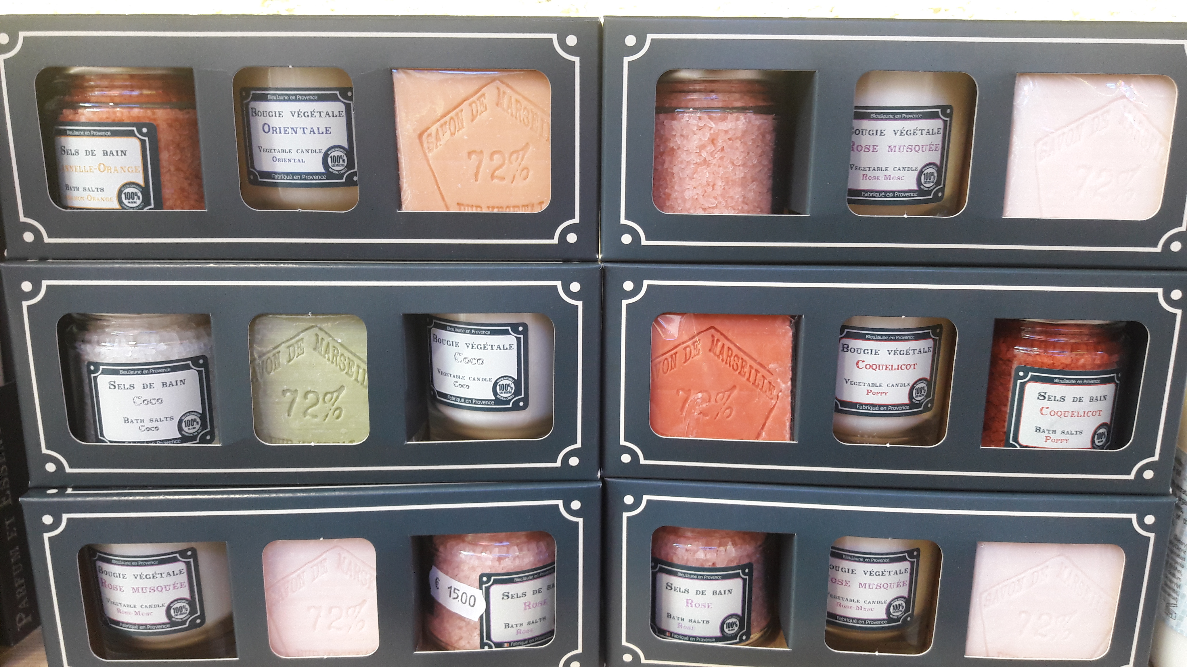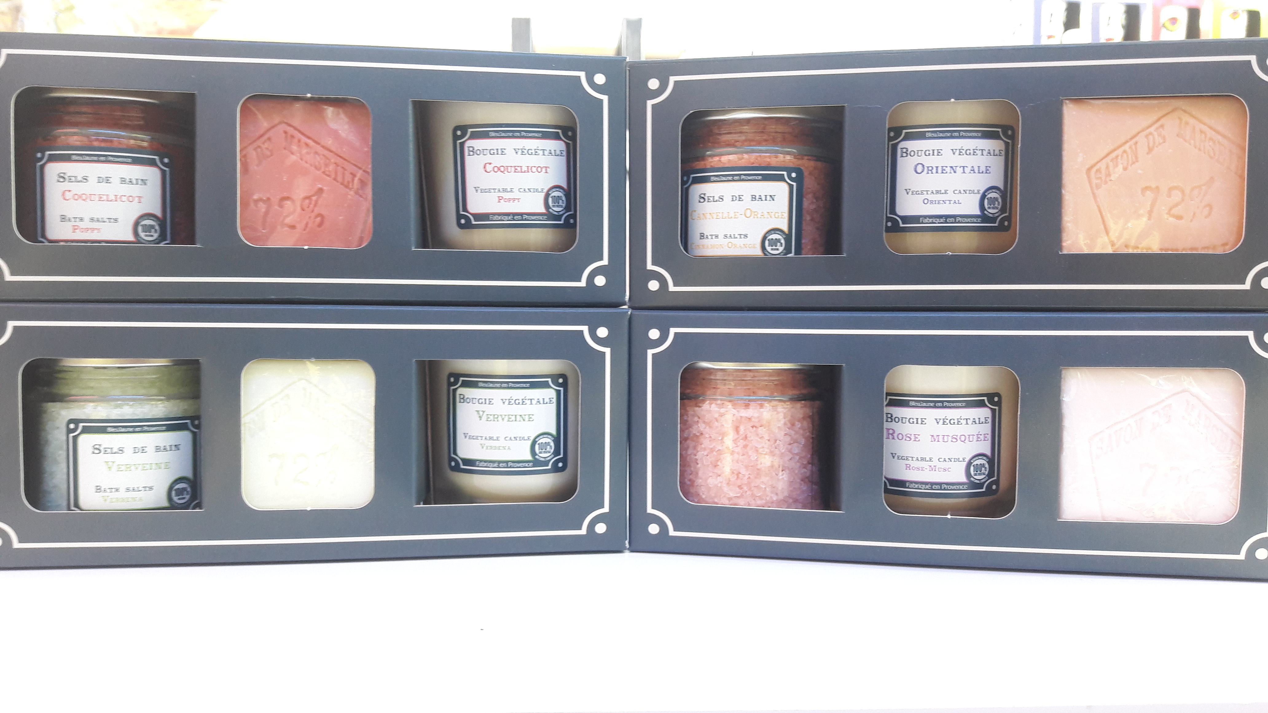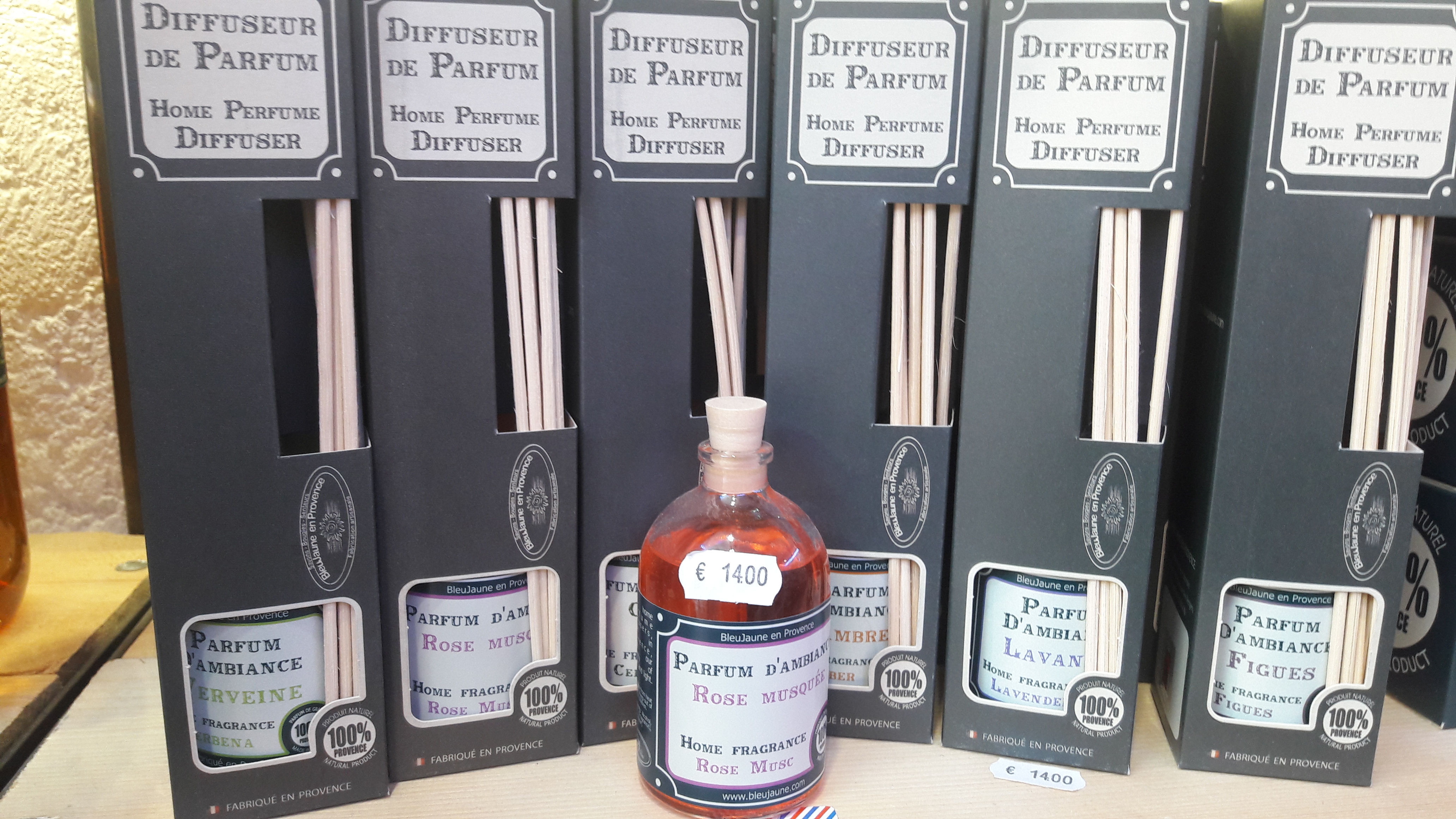 Parfums aux choix : Lavande, Coquelicot, Figue, Orange, Provence, Sensuelle, Verveine, Cèdre, Musc, Rose musquée