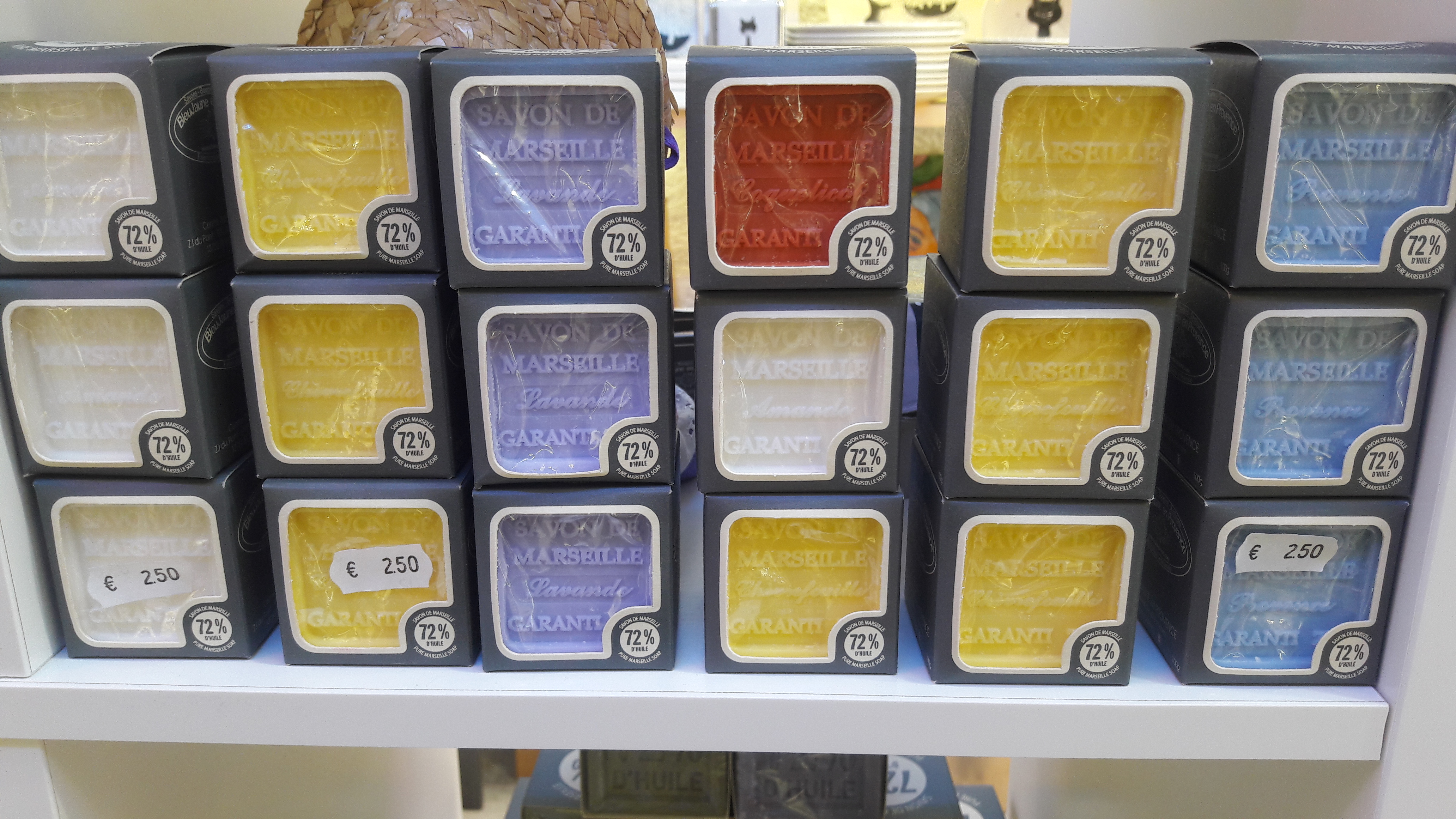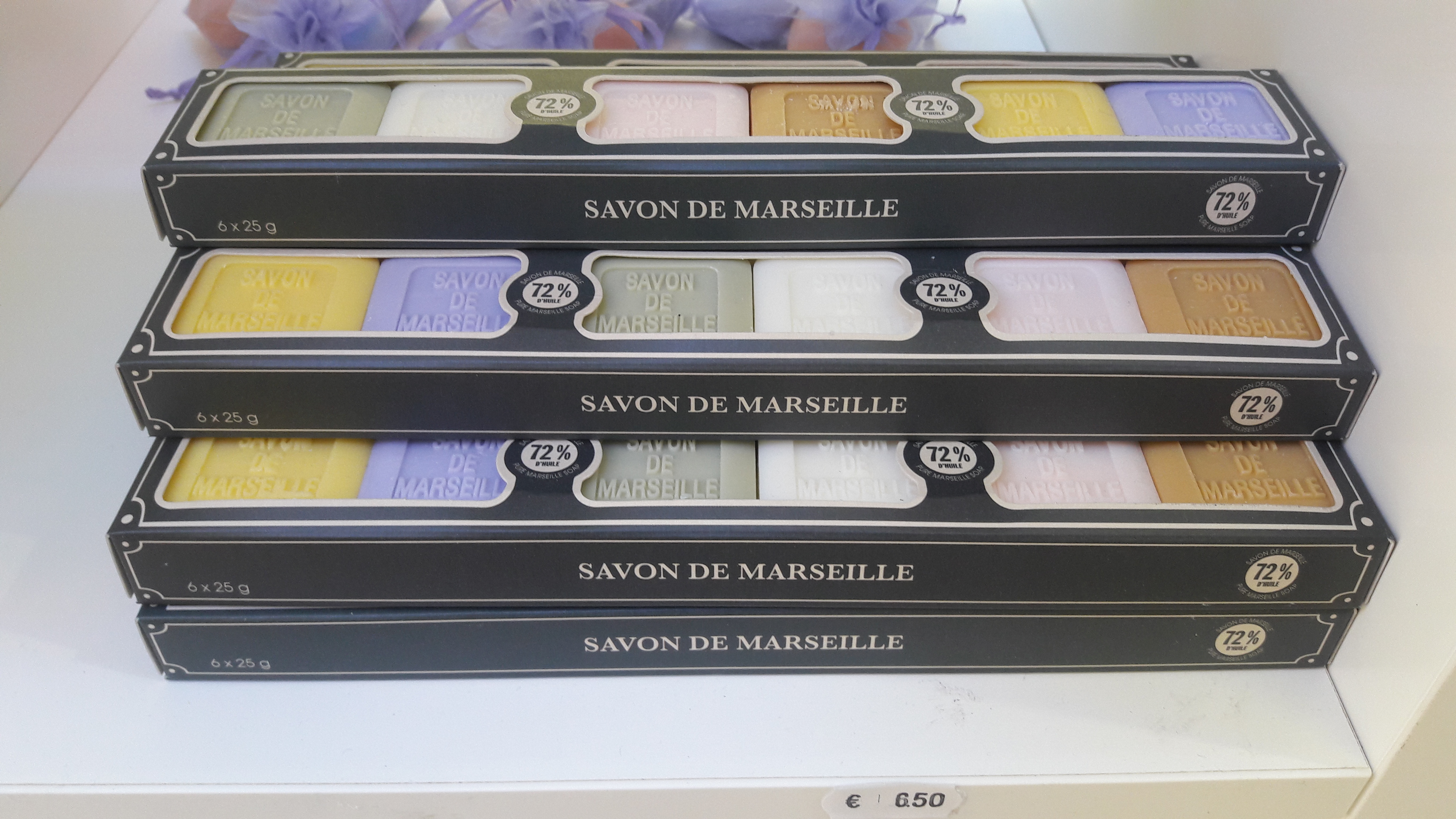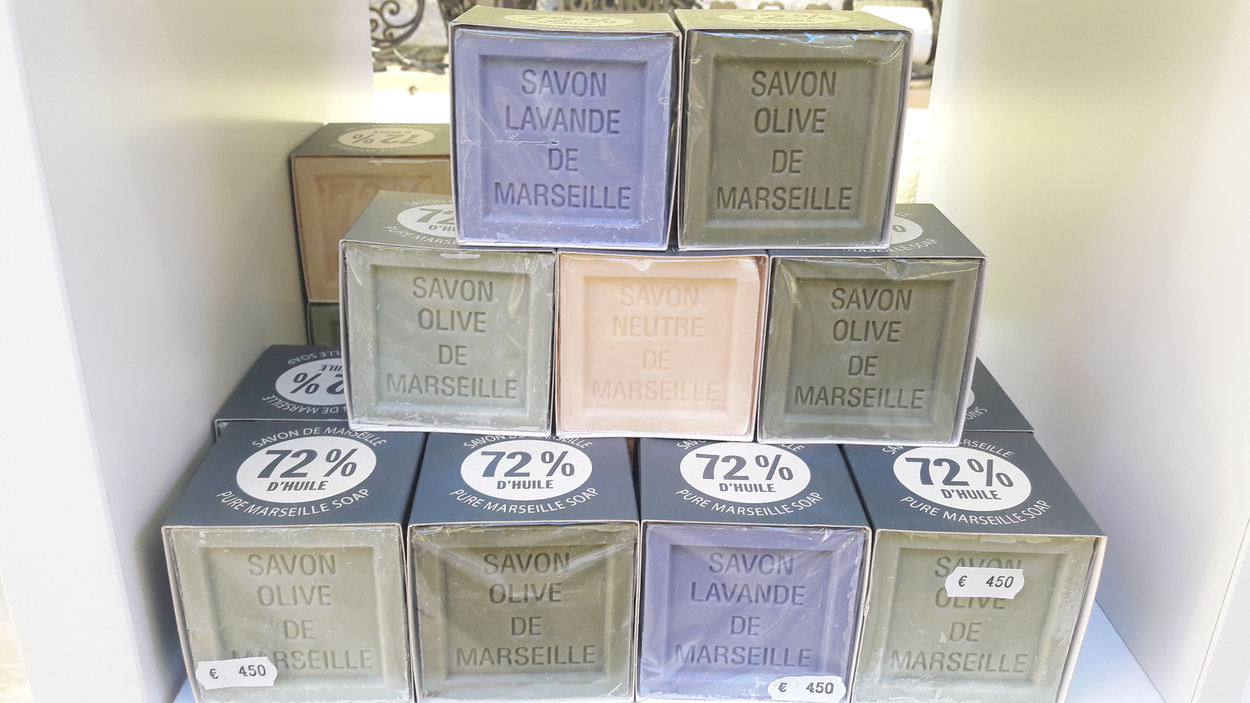 - la très connue Savonnette de Marseille, un rectangle de 100g