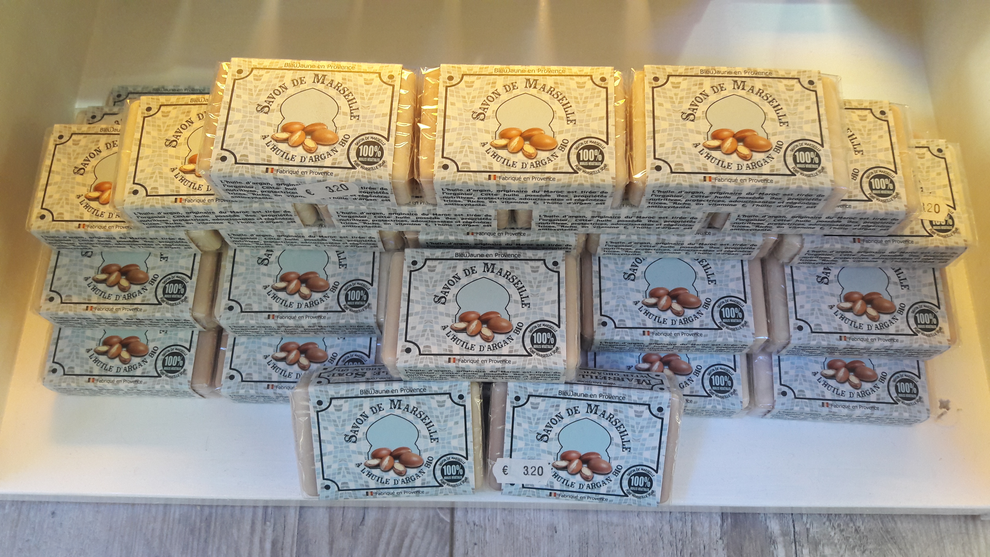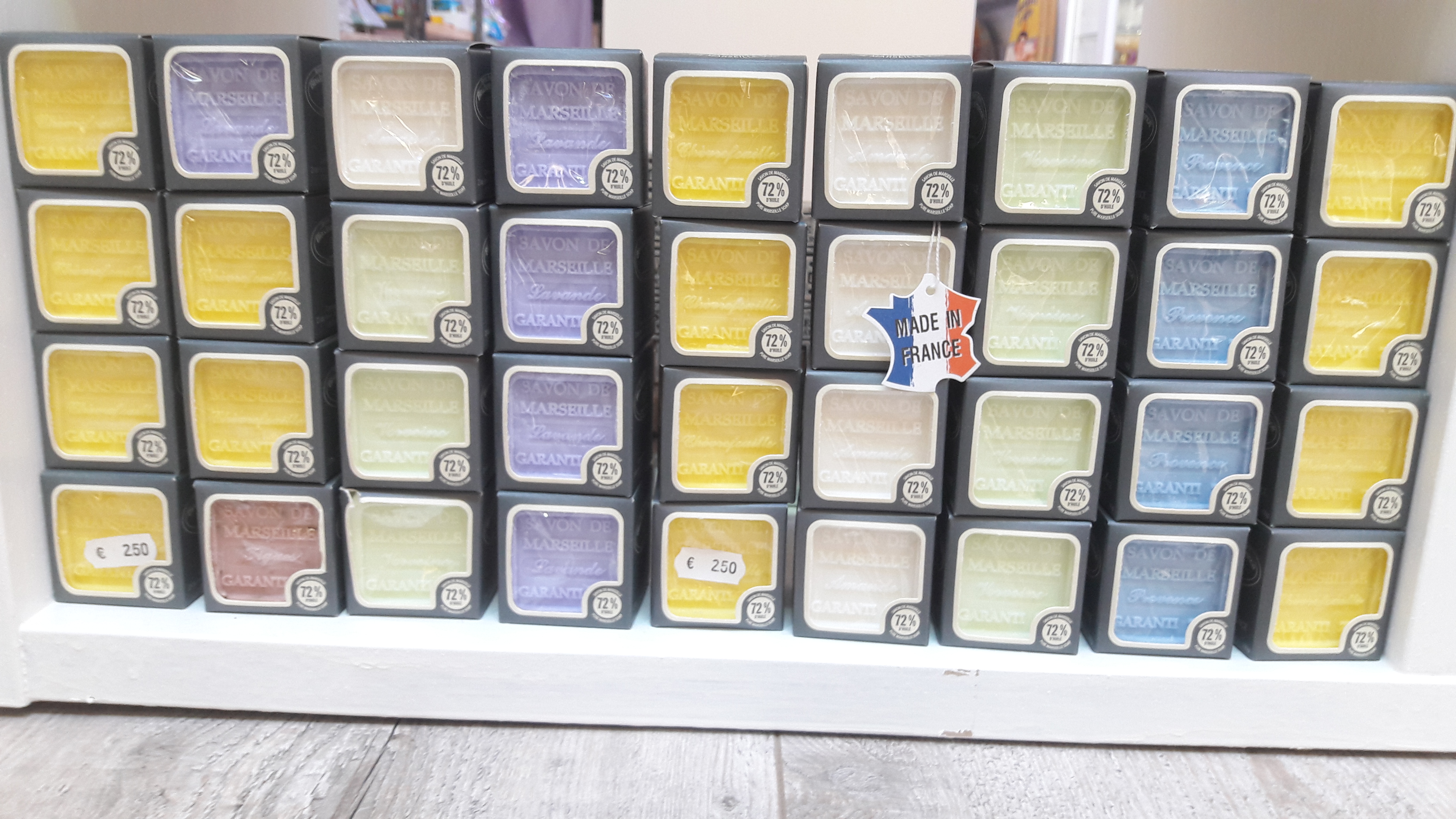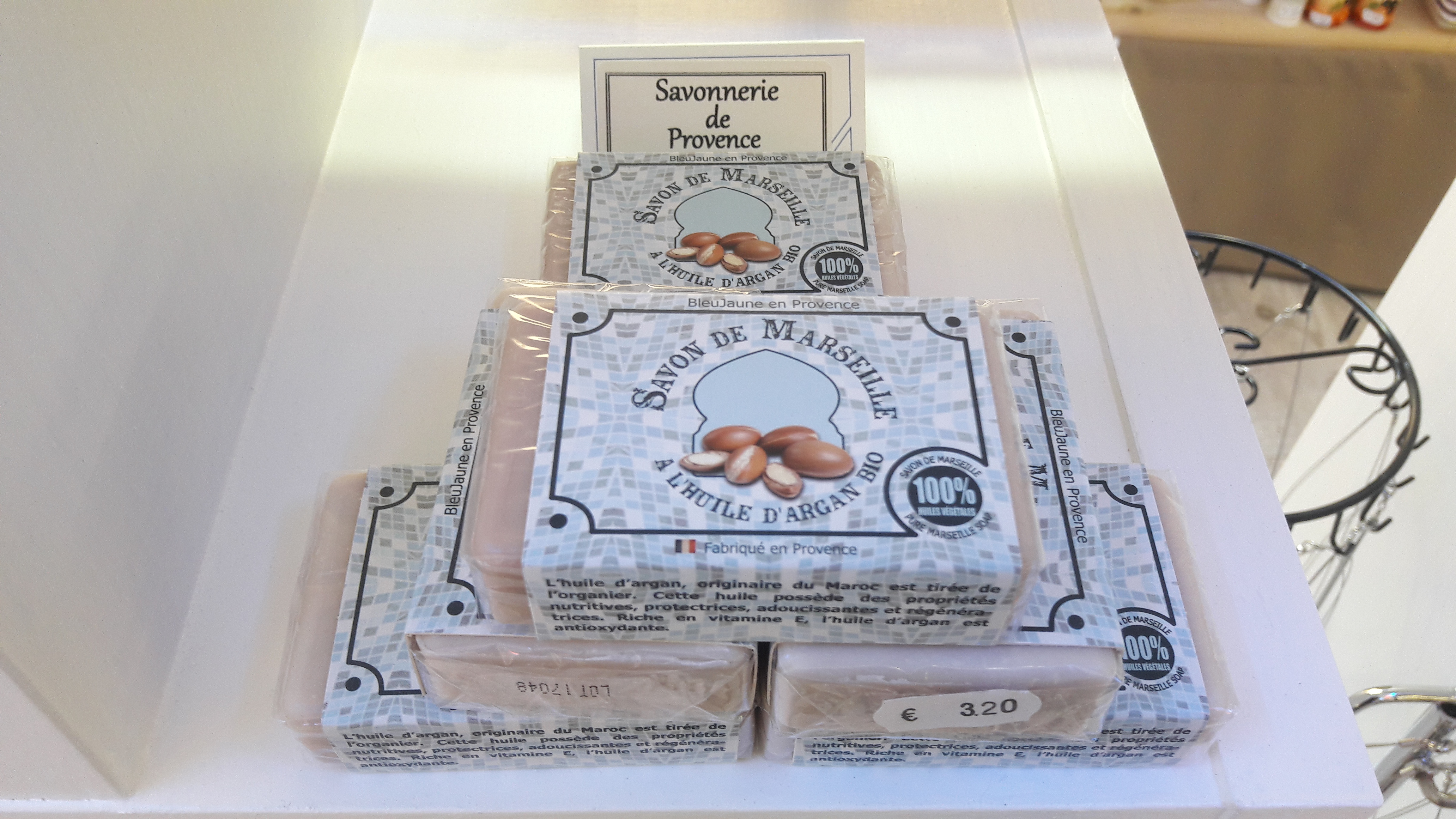 - la très connue Savonnette de Marseille, un rectangle de 100g