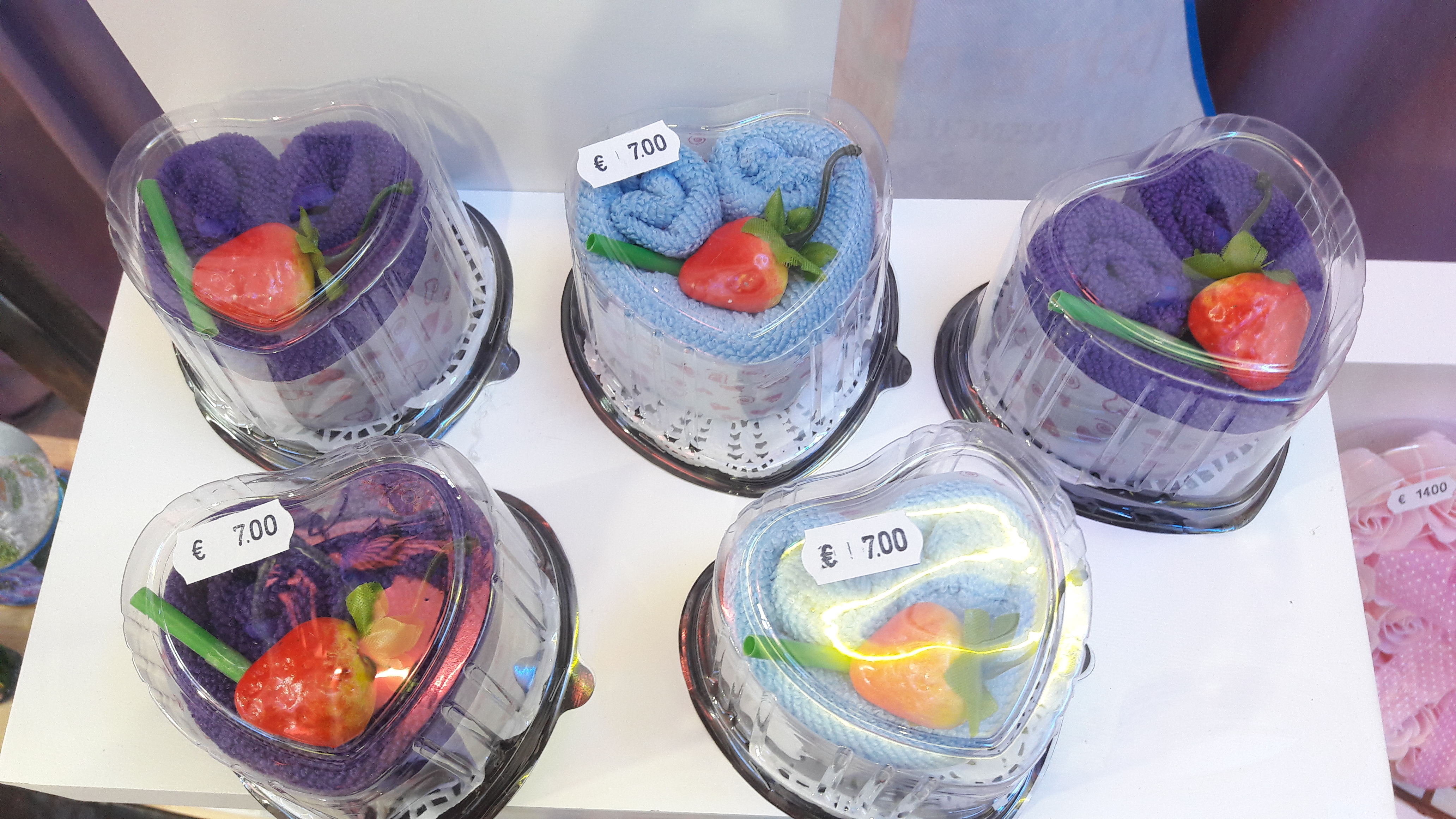 Les serviettes sont en coton leurs dimensions sont environ 20x20cm pour les petites formes et 30x30cm pour les plus grandes.