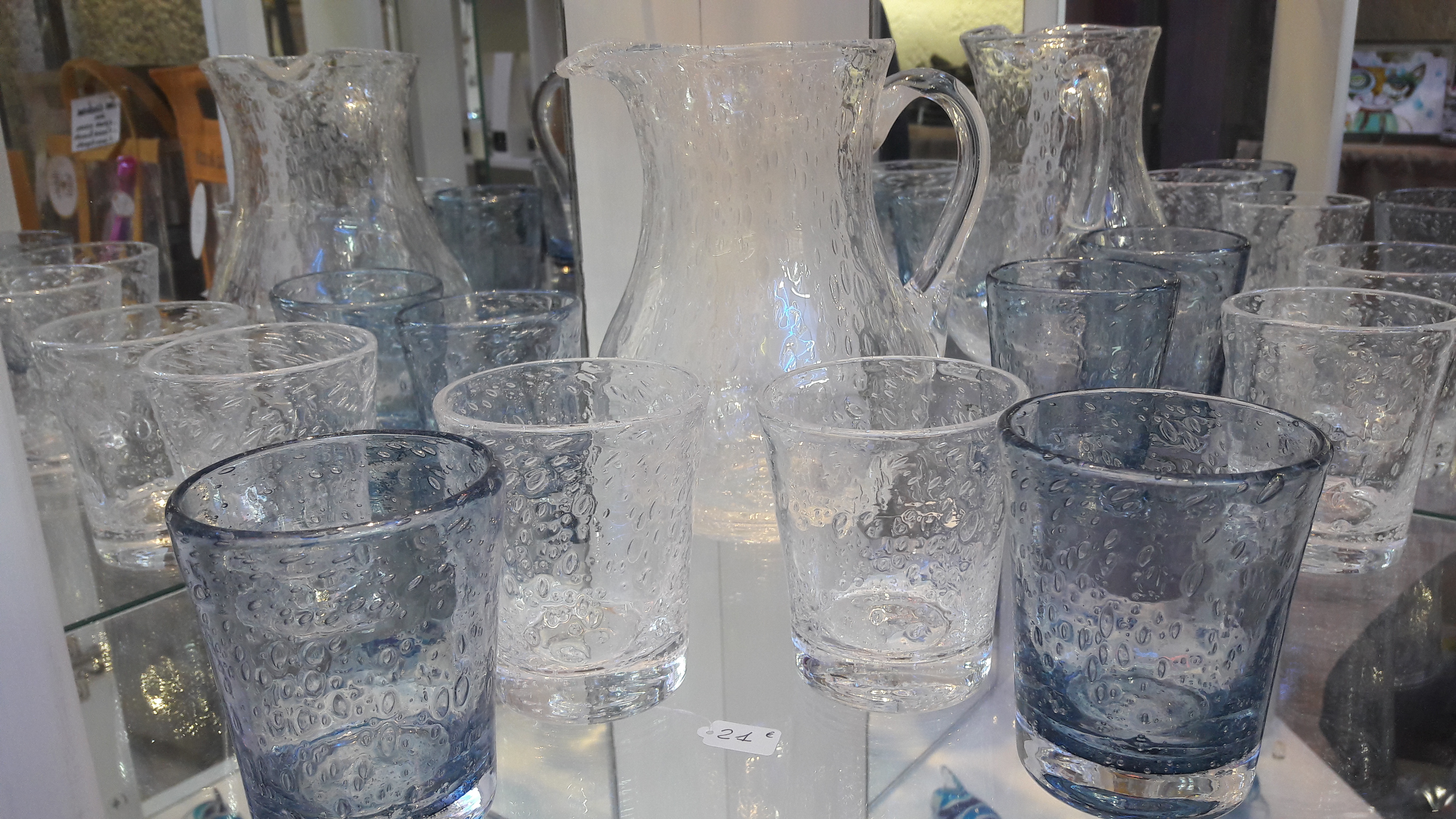 Vous admirez aussi des pièces en Verre Bullé de Biot (France) de notre maître verrier.