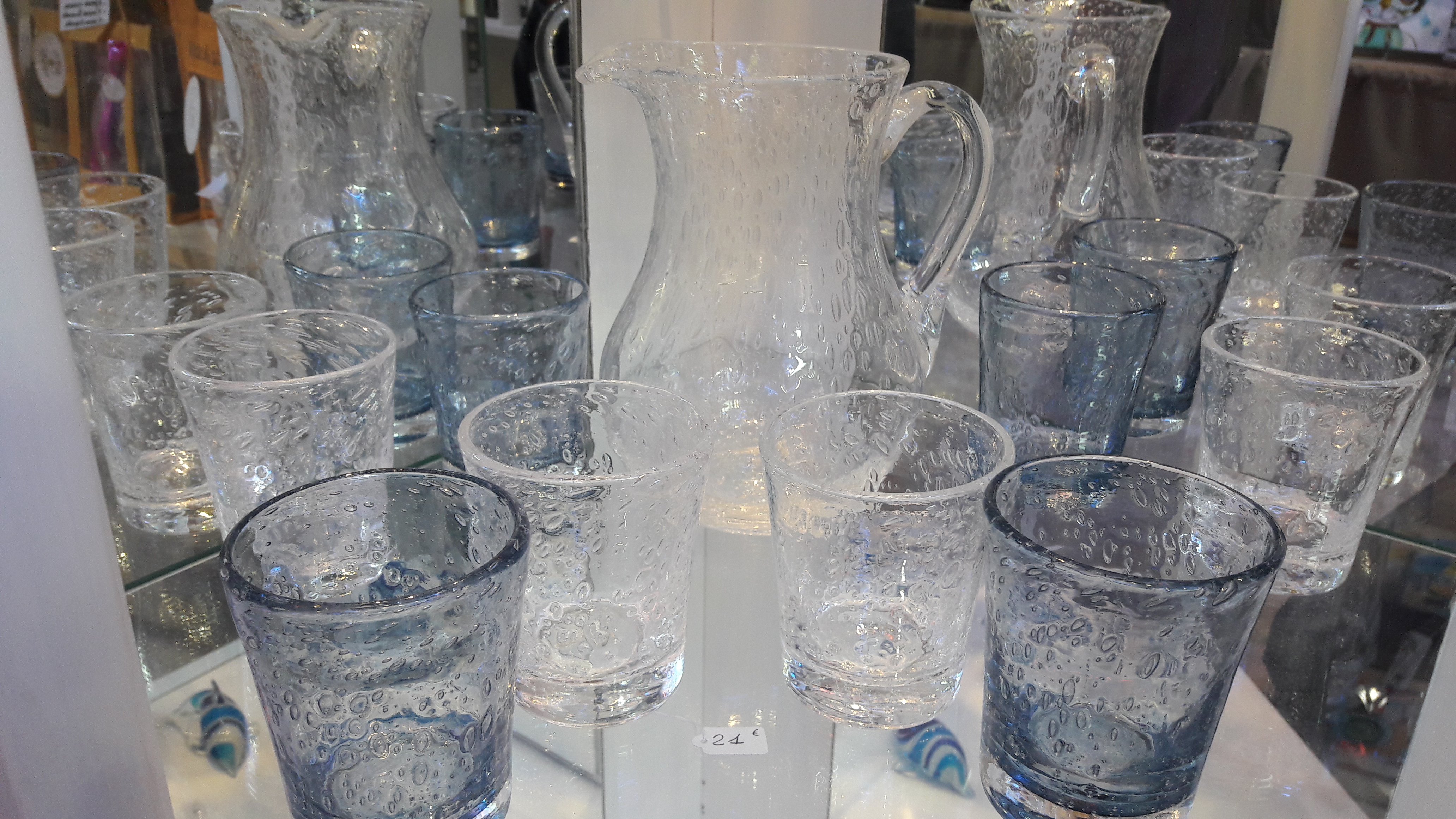 Très belle collection de pièces en verre du très renommé verre bullé de Biot (France, Var). Le verre bullé marie robustesse et esthétisme.