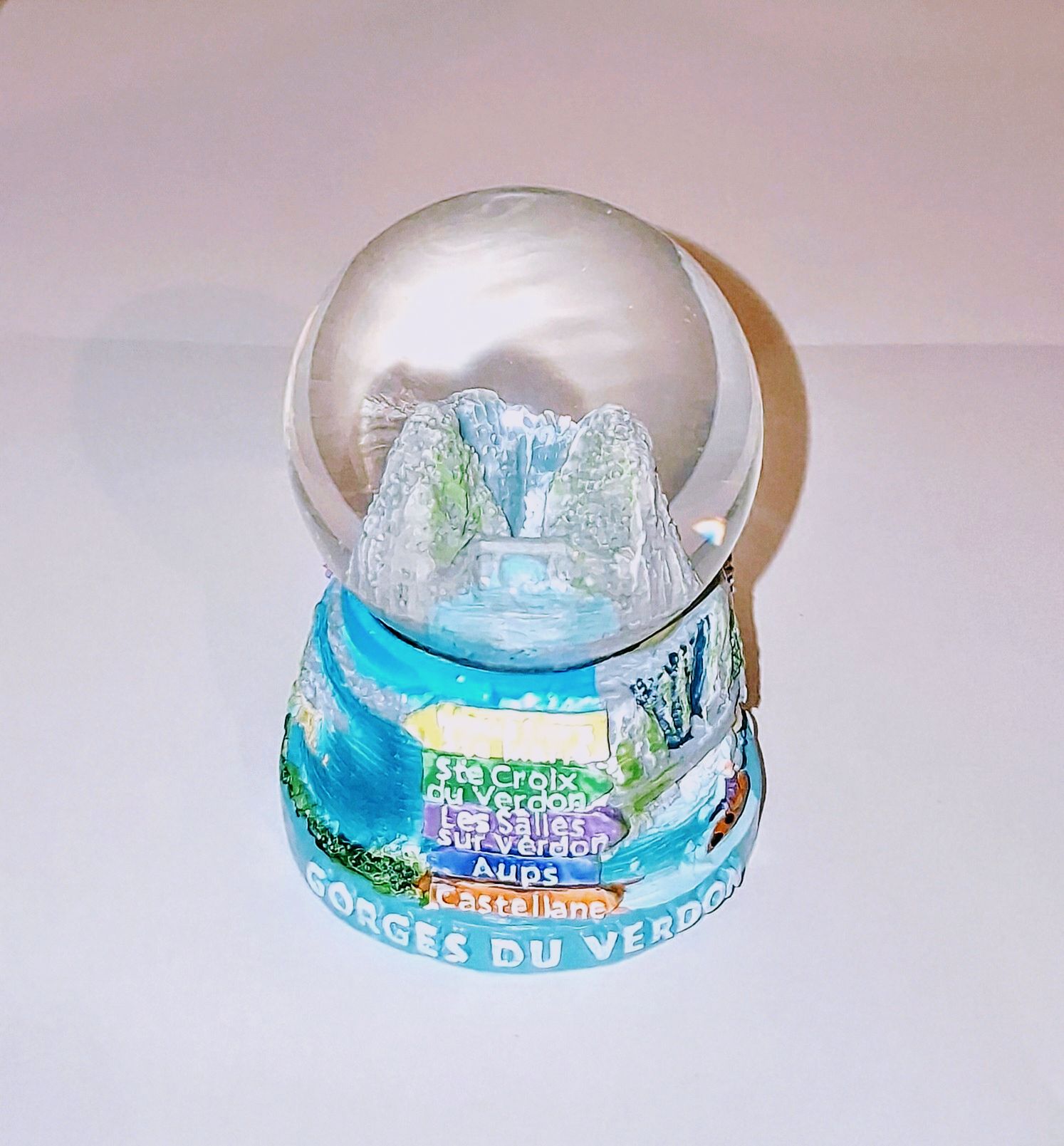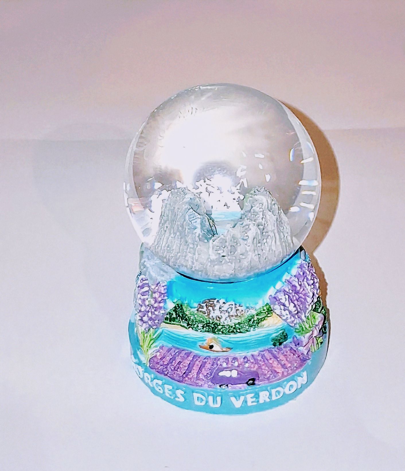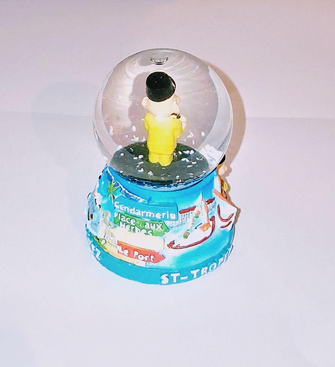 Ce petit modèle de boule de neige en verre contient, un joli flamant rose, un bouquet de lavande, le gendarme de Saint Tropez, un voilier ou le village de Bormes les Mimosas ,Hyères, Toulon, Avignon , Aix, Marseille , Nice , Cannes.