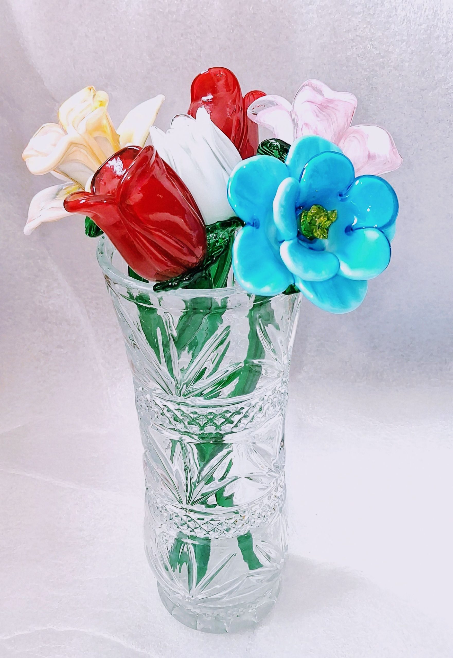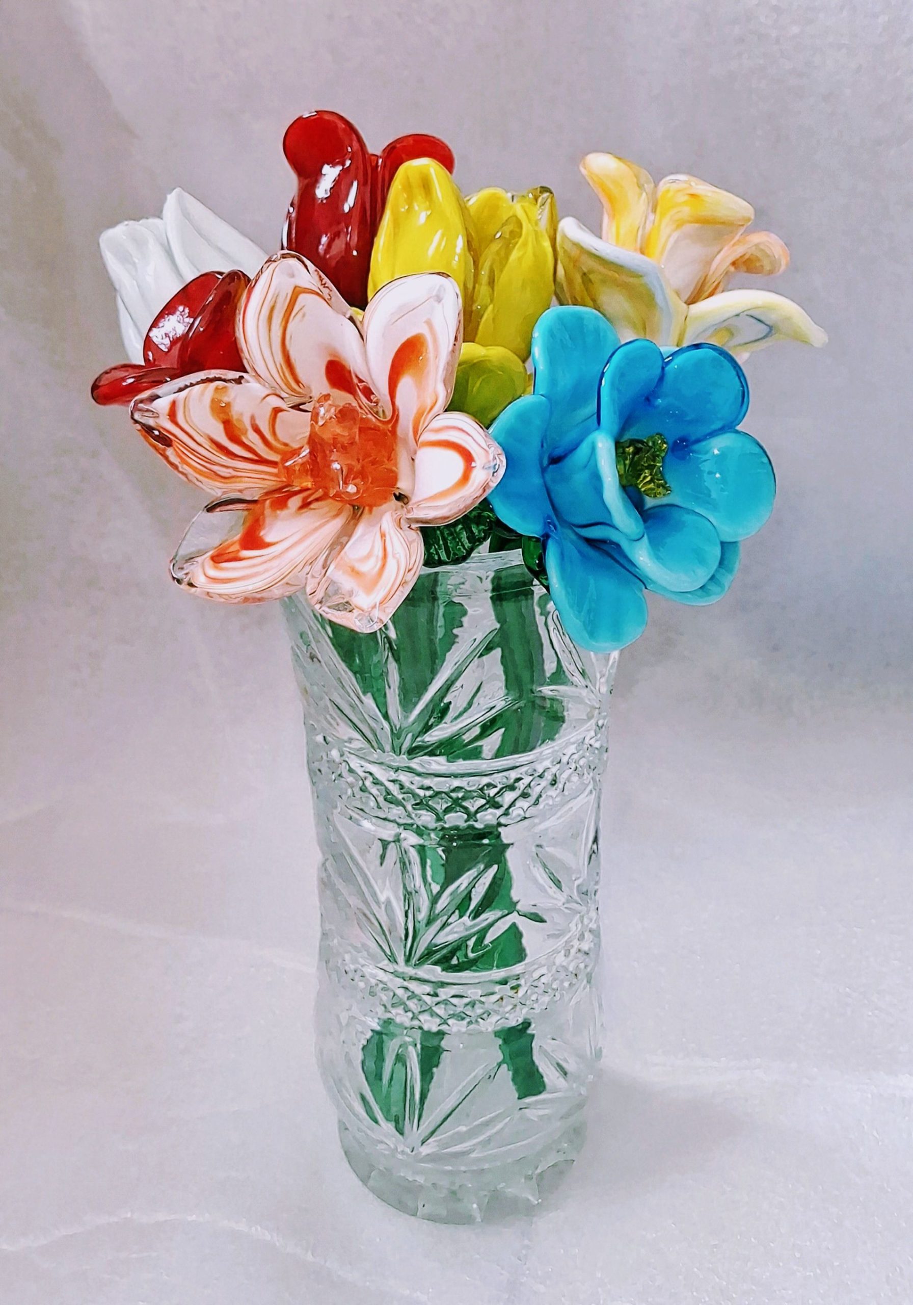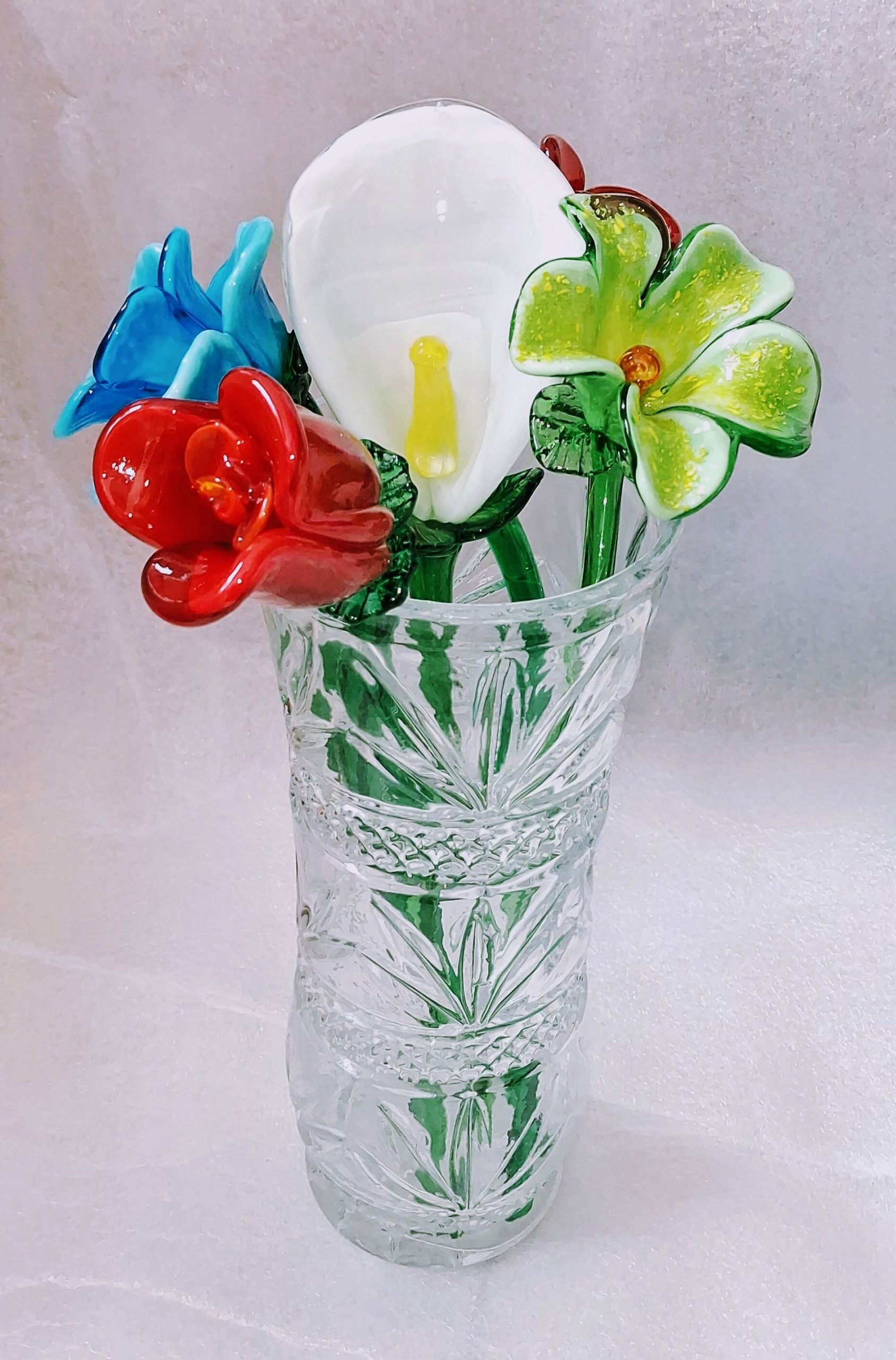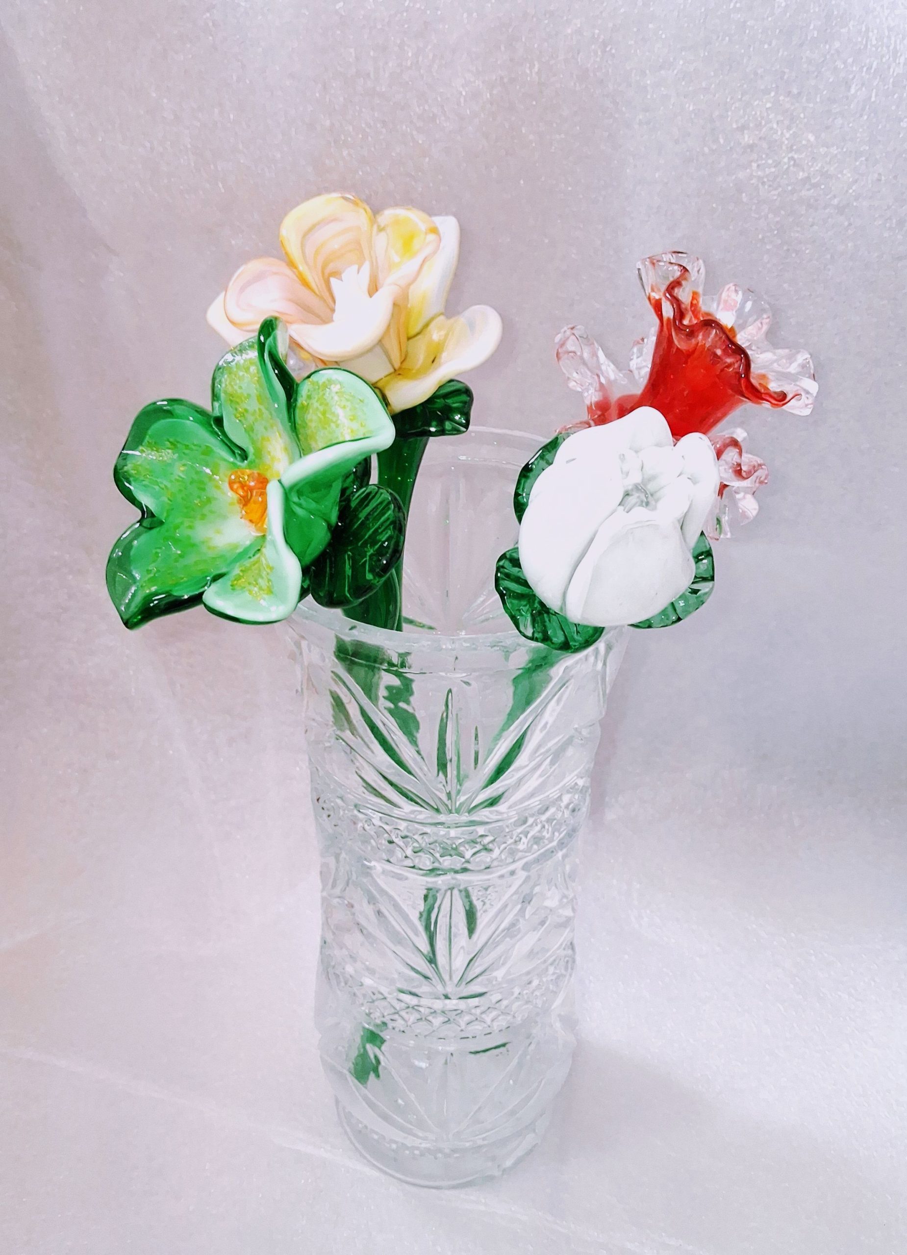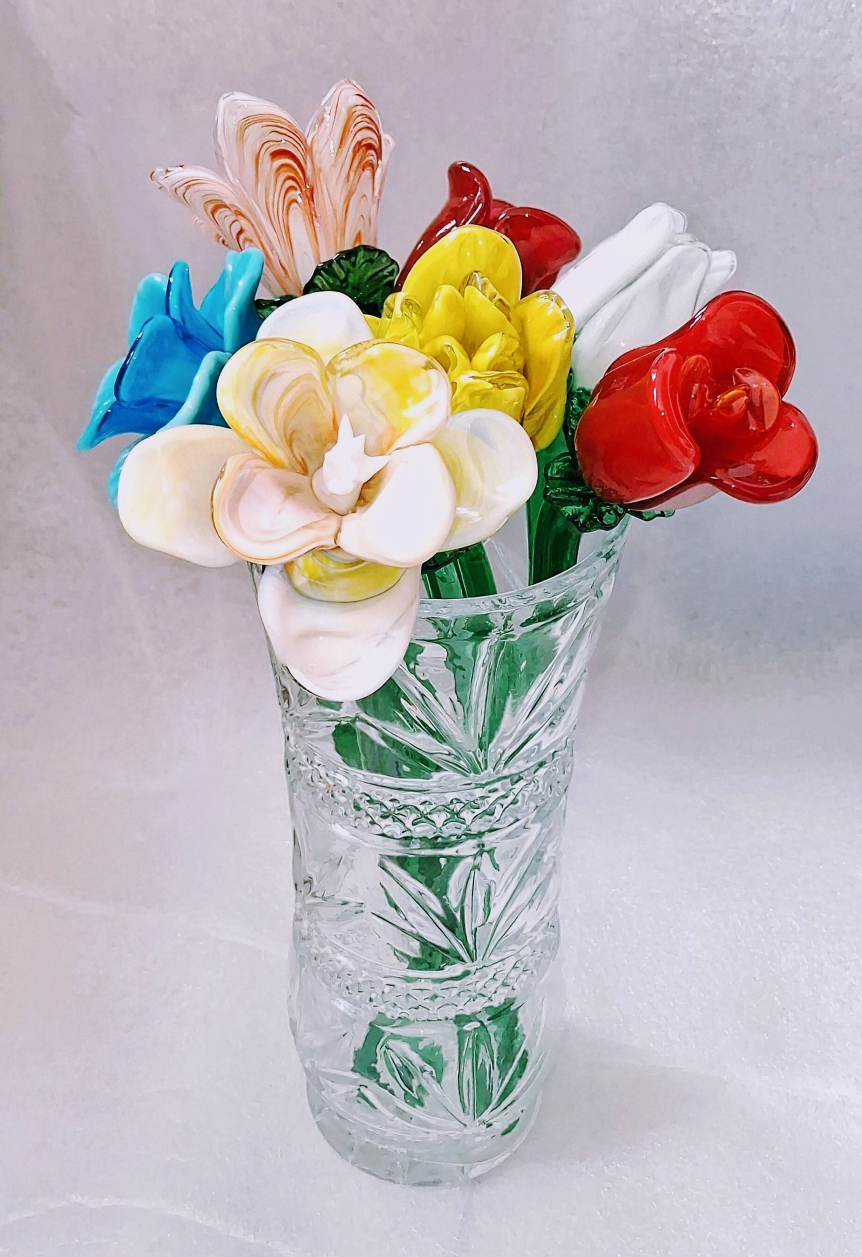 Rose, narcisse, tulipe, coquelicot, arum, fleur de lys, gardénia, freesia, jonquille en verre soufflé